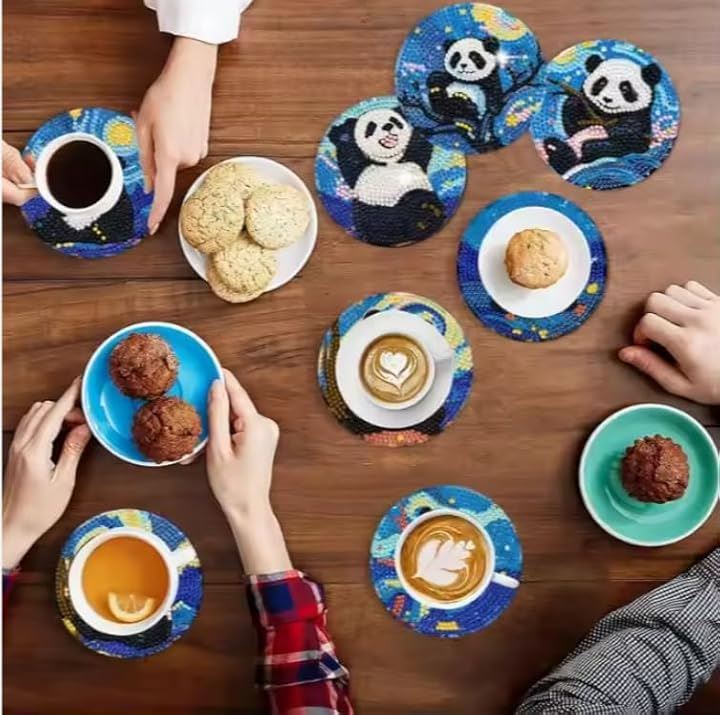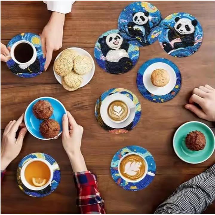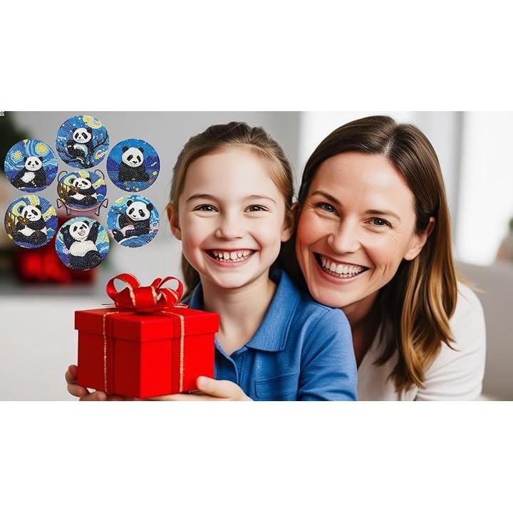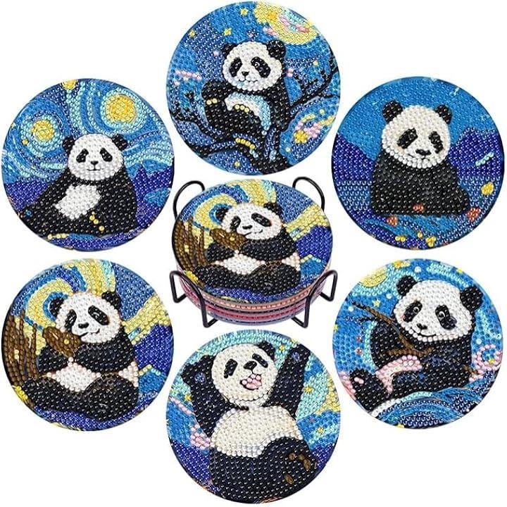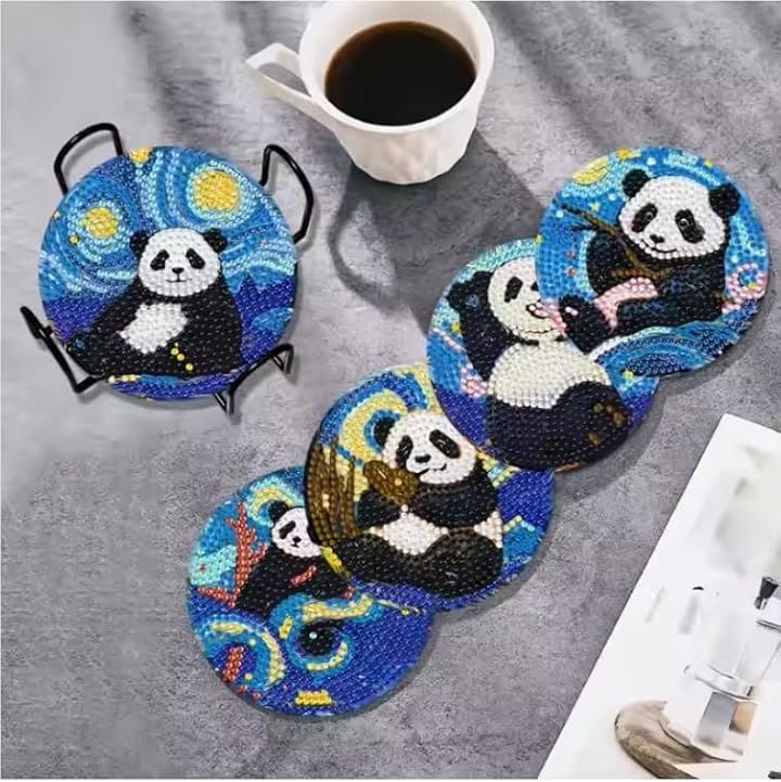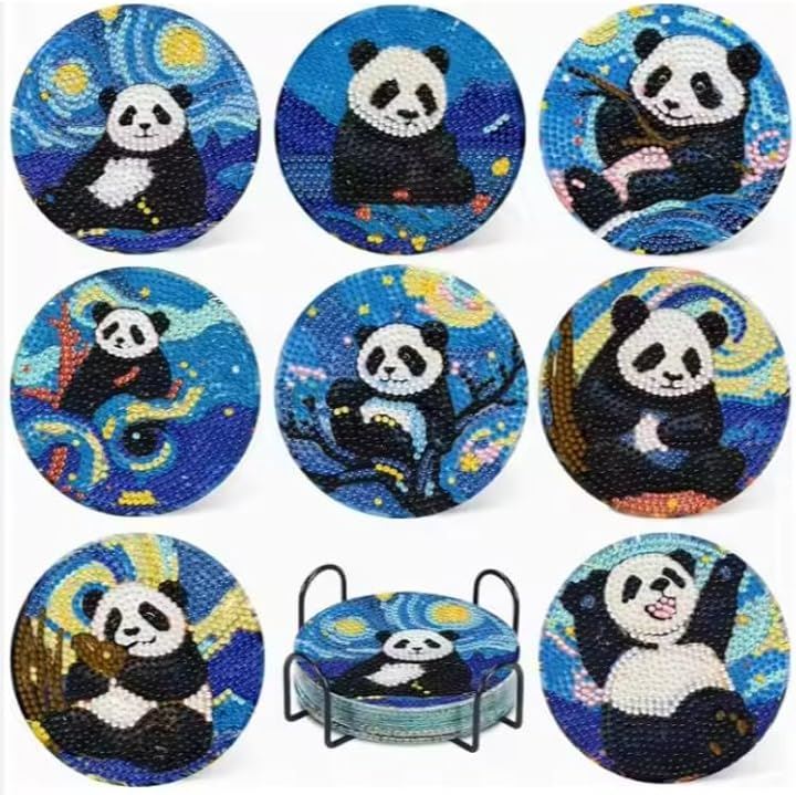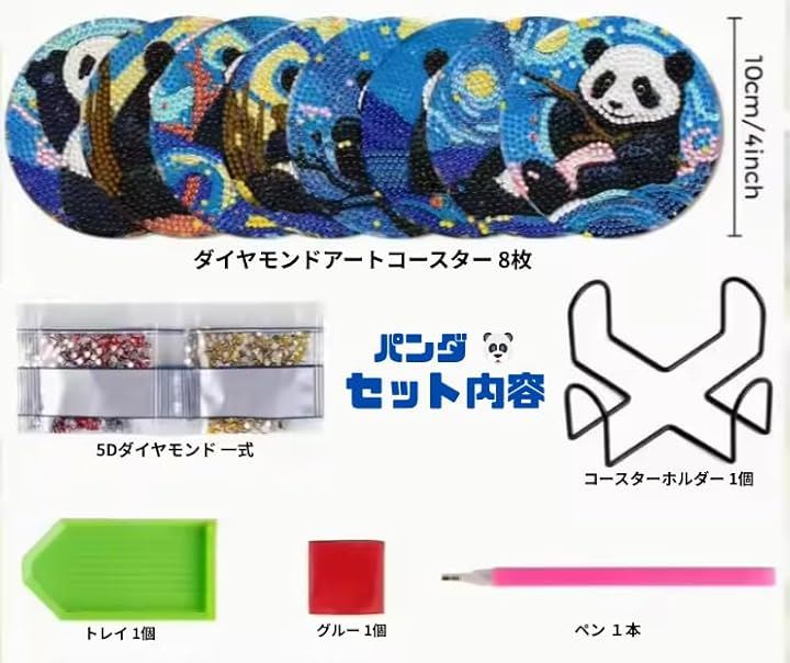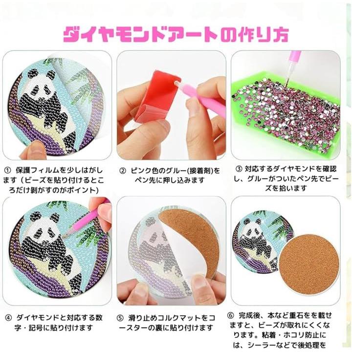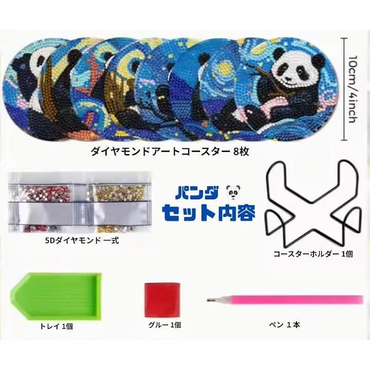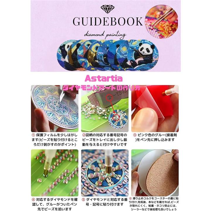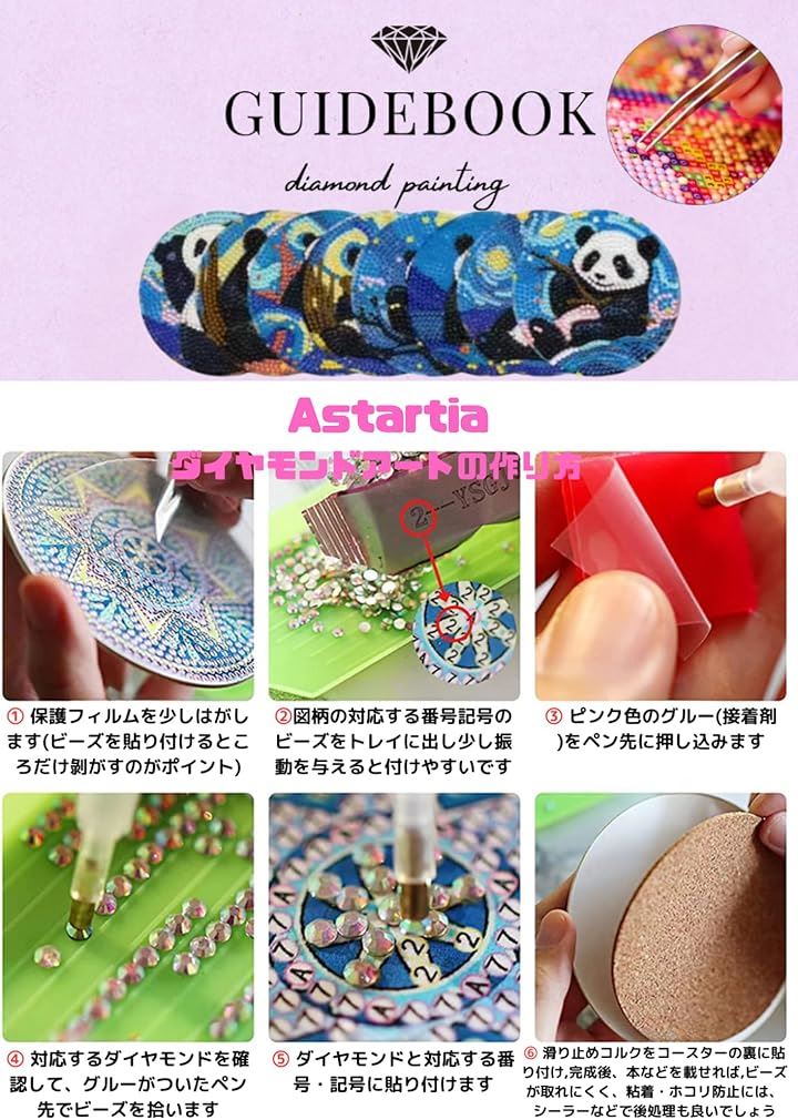 Astartia ダイヤモンドアート コースター キット DIY ダイヤモンドビーズ 5Dダイヤモンド塗装キット 8枚入 ホルダー付き かわいい
