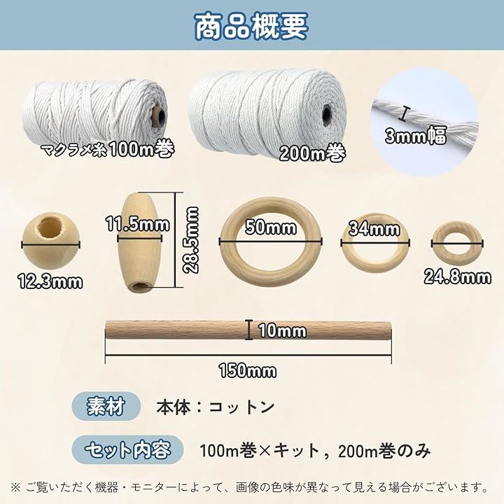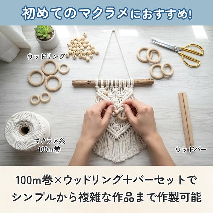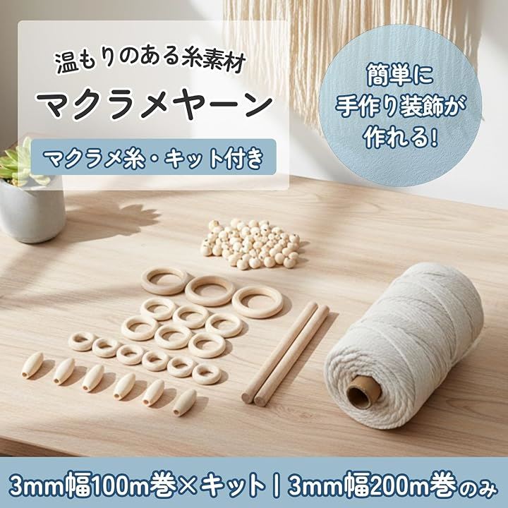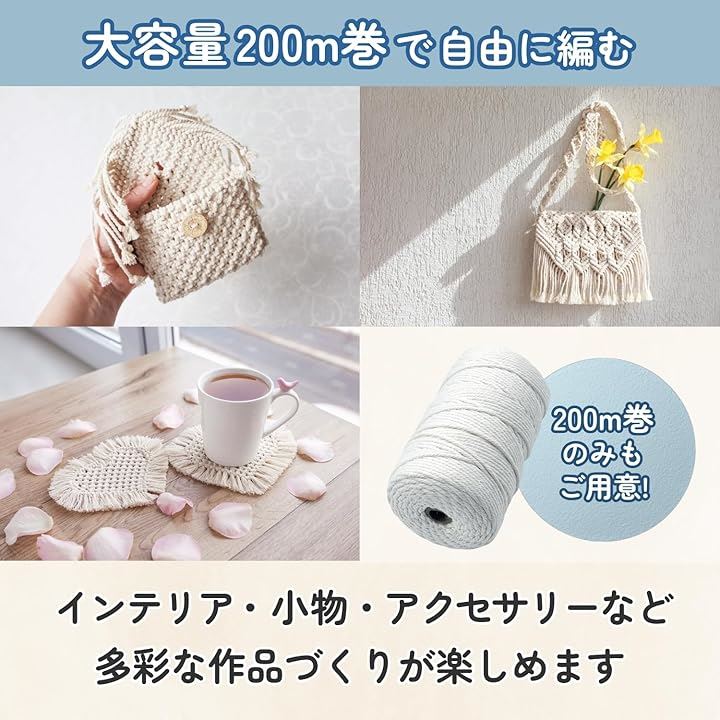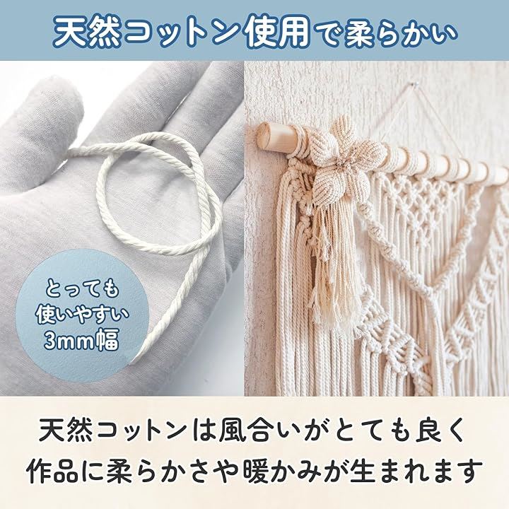 マクラメヤーン 糸 ロープ 編み 織り 編み物 コットン 紐 diy 綿 イト 手芸 タペストリー