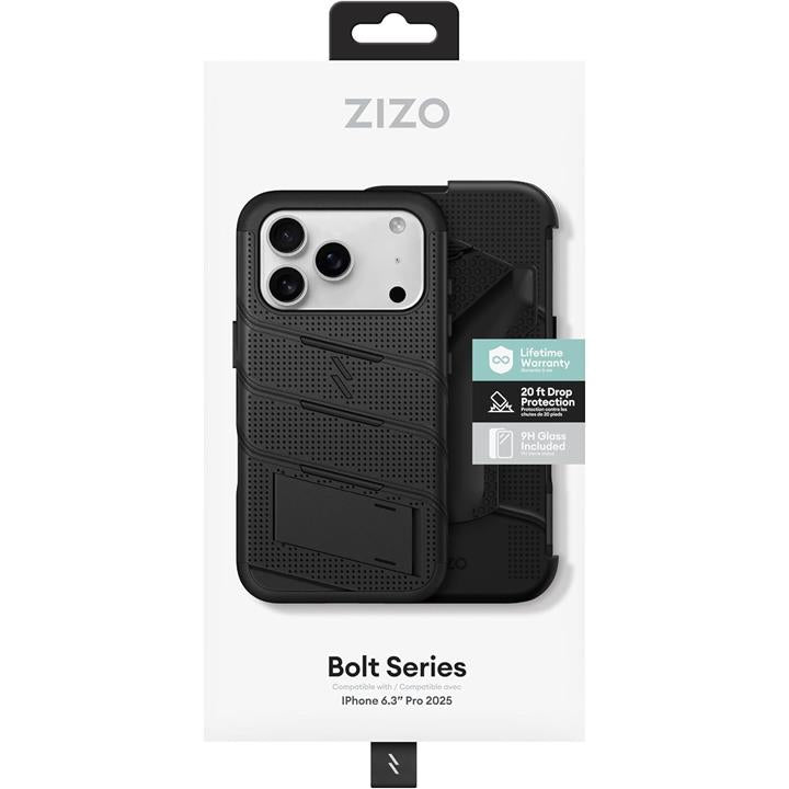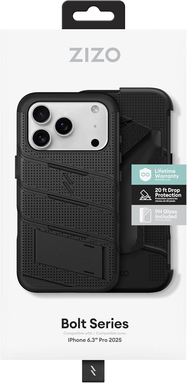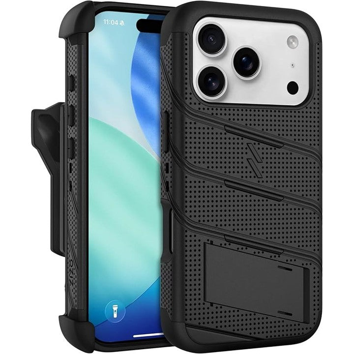 ZIZOiPhone 17 Pro 用 ケース MagSafe対応 米軍MIL規格 516.6落下テスト済 耐衝撃 360度保護 強化ガラス/キックスタンド/ホルスター/ランヤード付属 BOLT