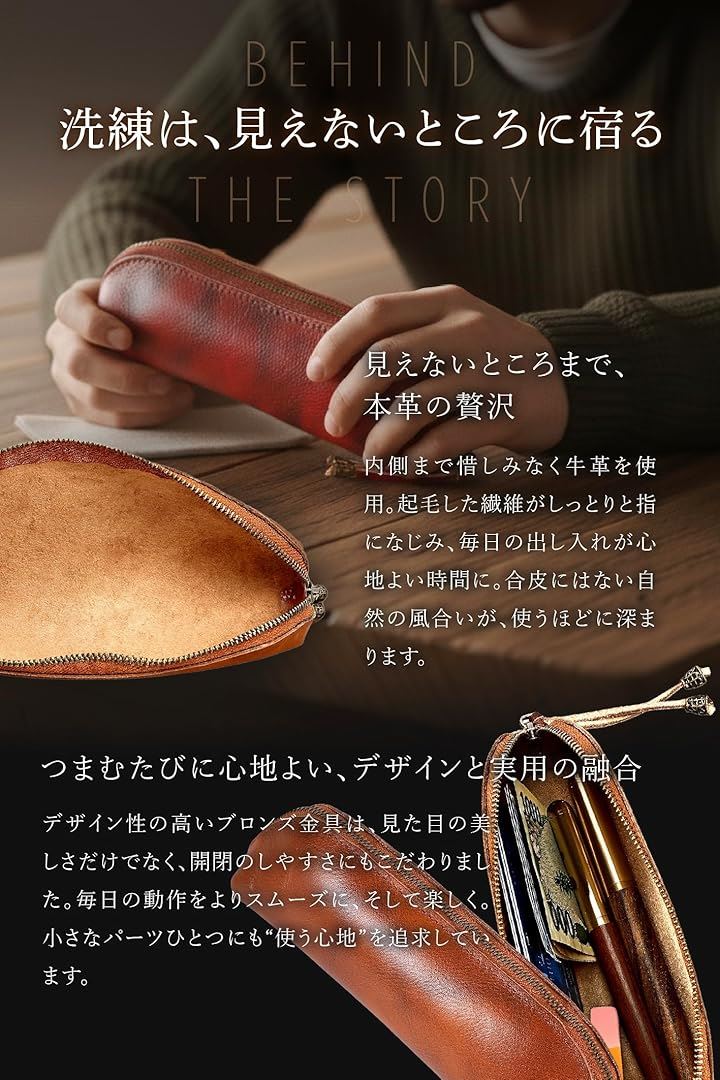 革製品コンサルタント監修 ペンケース 筆箱 大人 スリム おしゃれ 大容量 可愛い レザー シンプル