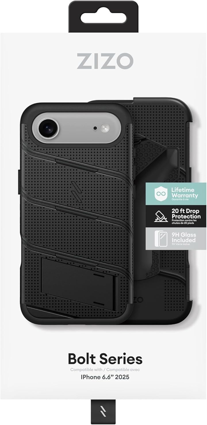 ZIZOiPhone 17 Air 用 ケース MagSafe対応 米軍MIL規格 516.6落下テスト済 耐衝撃 360度保護 強化ガラス/キックスタンド/ホルスター/ランヤード付属