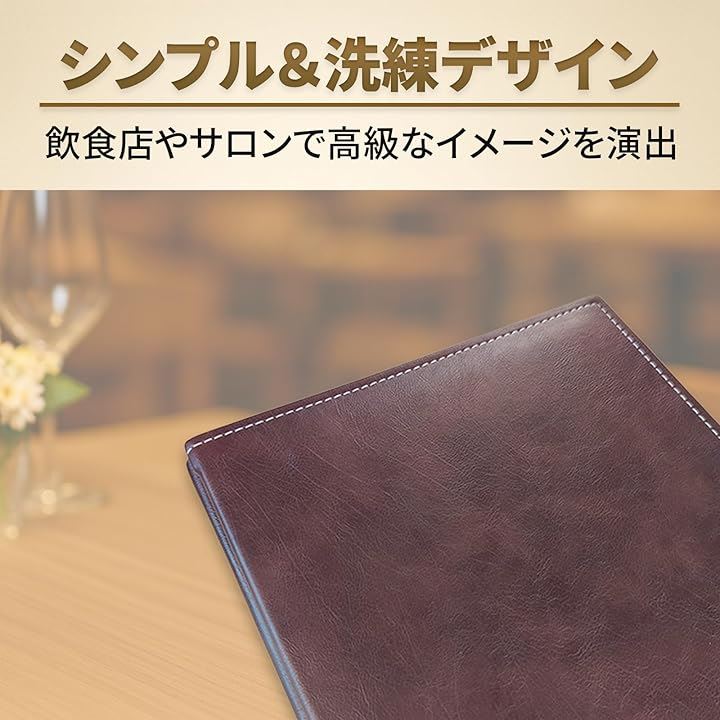 メニューブック A4 40ポケット メニューファイル 上入れ式 クリアポケット ハードタイプ 高級PUレザー 耐水