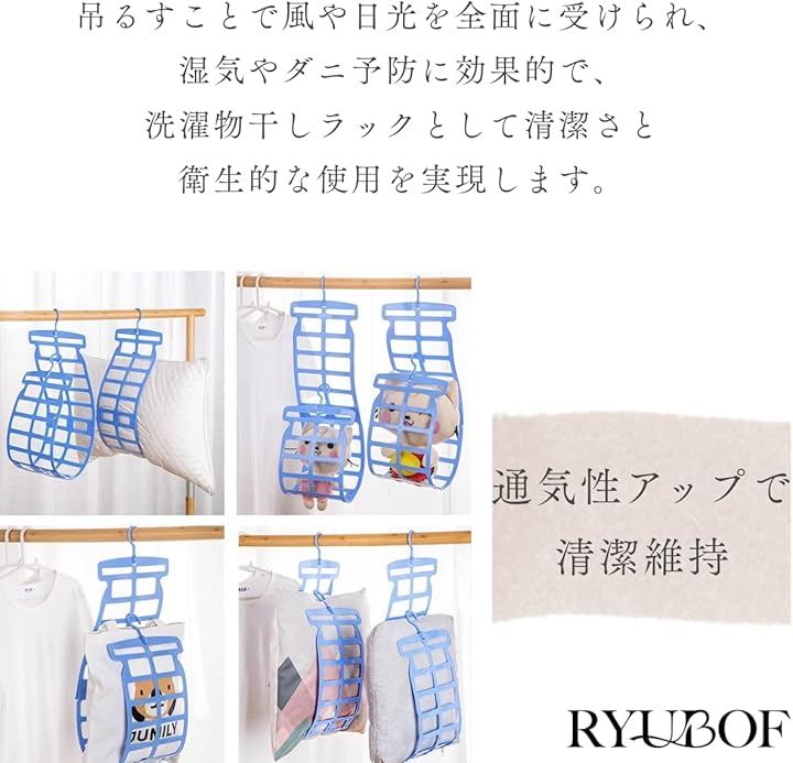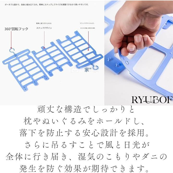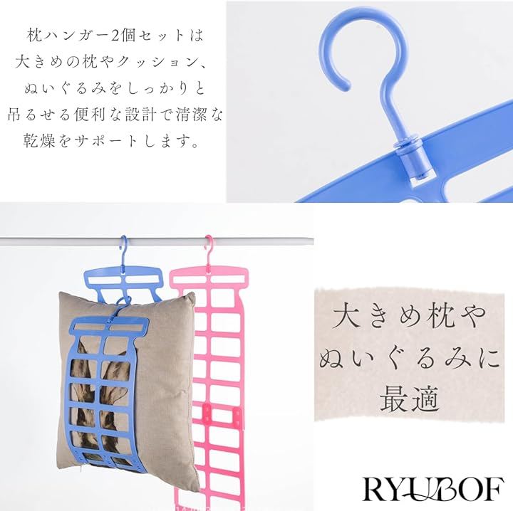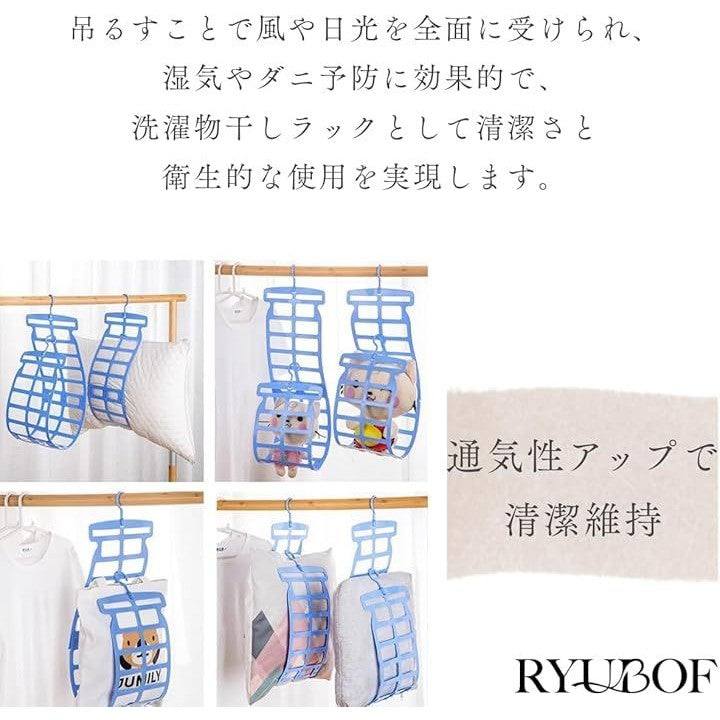 枕干しハンガー 2個セット ネット 枕を干すハンガー 大きめ枕対応 ぬいぐるみ 洗濯 ハンガーラック 2段 調整可能 360度回転