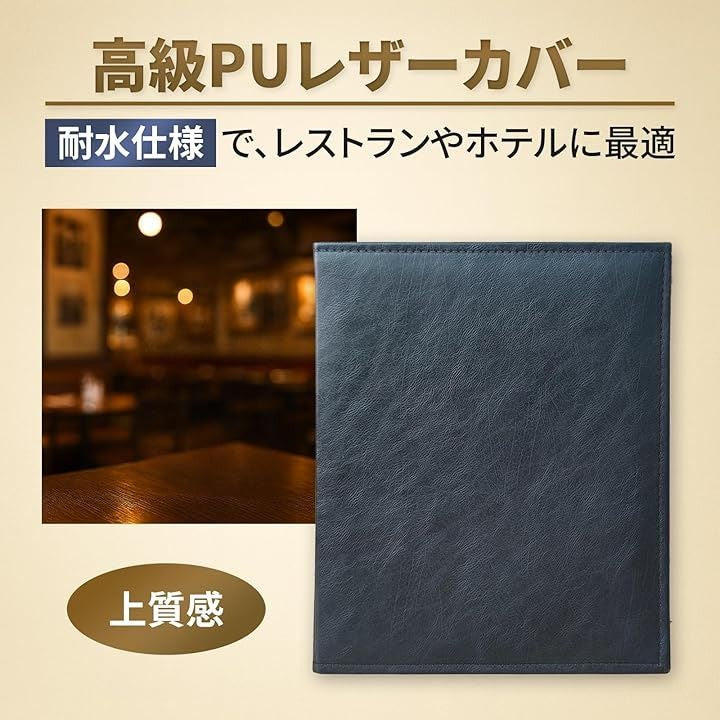 メニューブック A4 40ポケット メニューファイル 上入れ式 クリアポケット ハードタイプ 高級PUレザー 耐水