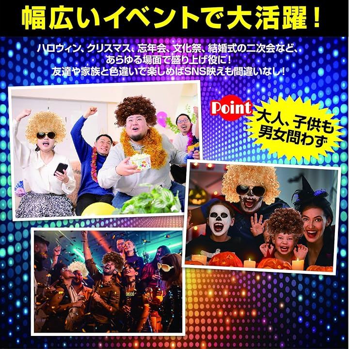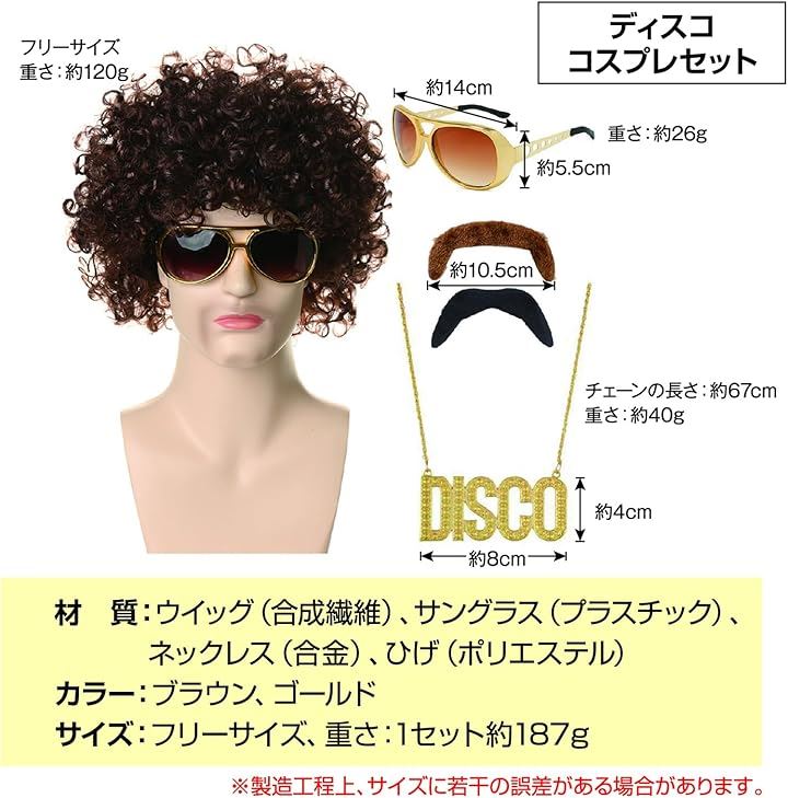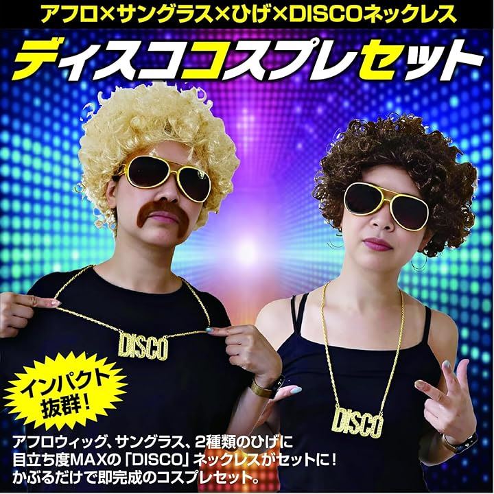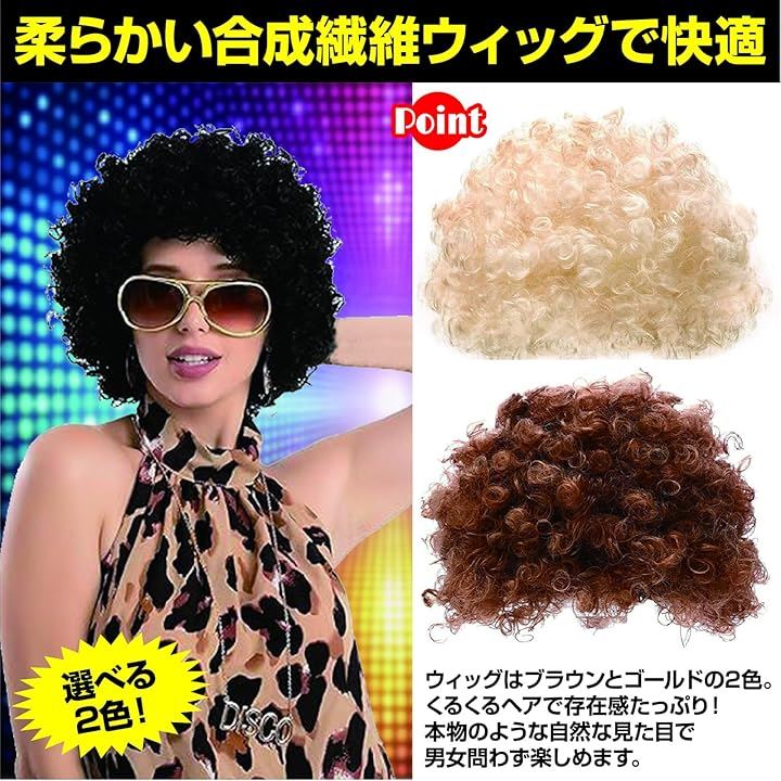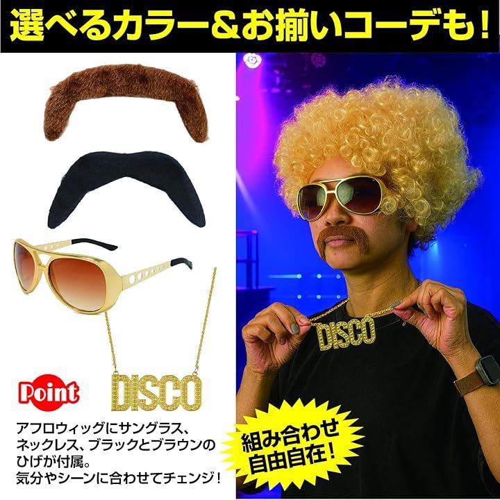ファンキーアフロ 4点セット ハロウィン コスプレ サングラス 髭 ネックレス付
