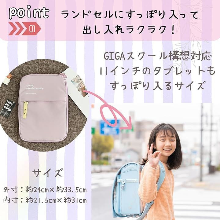 ランドセルに入るタブレットケース 11インチ iPad対応 女の子向け 衝撃吸収 キーボード収納 外ポケット付 通学に安心