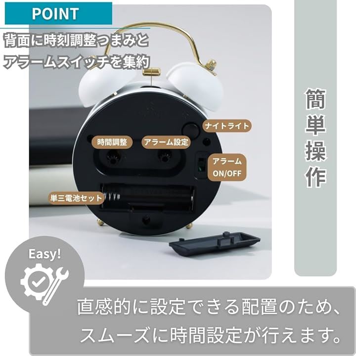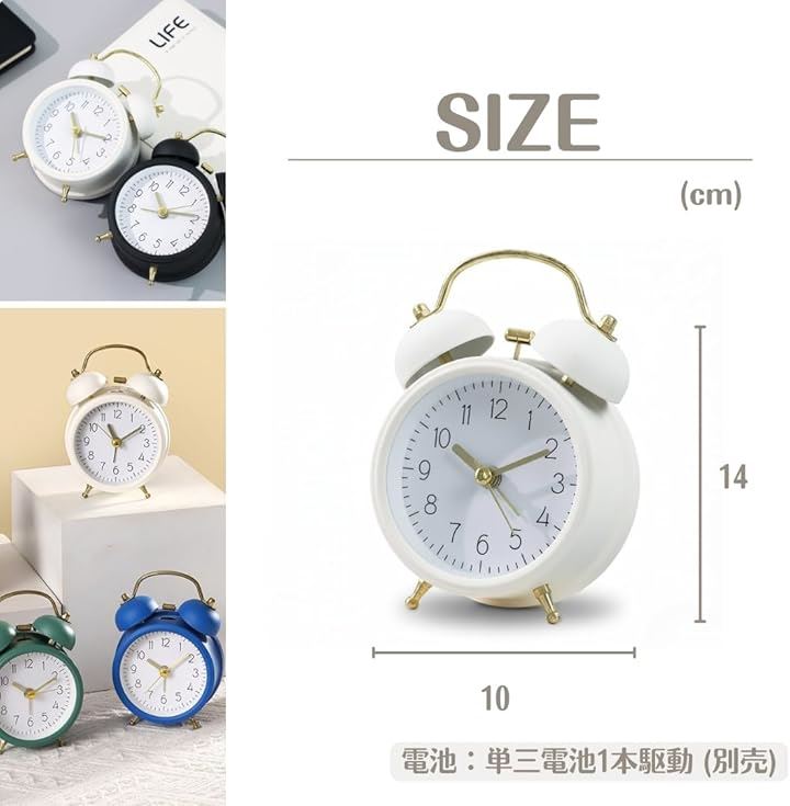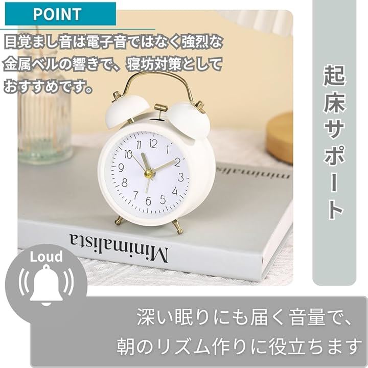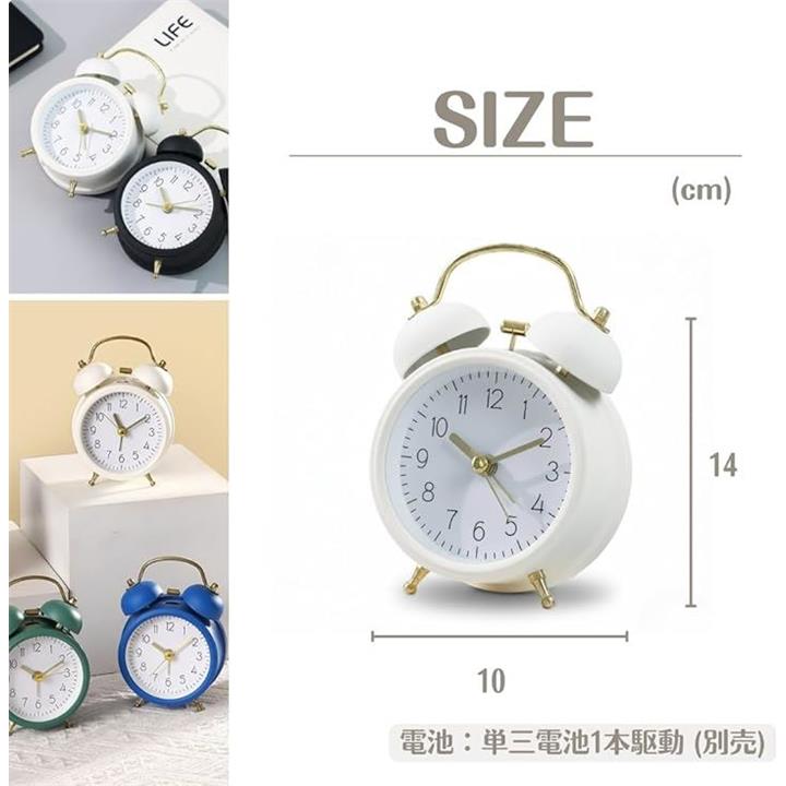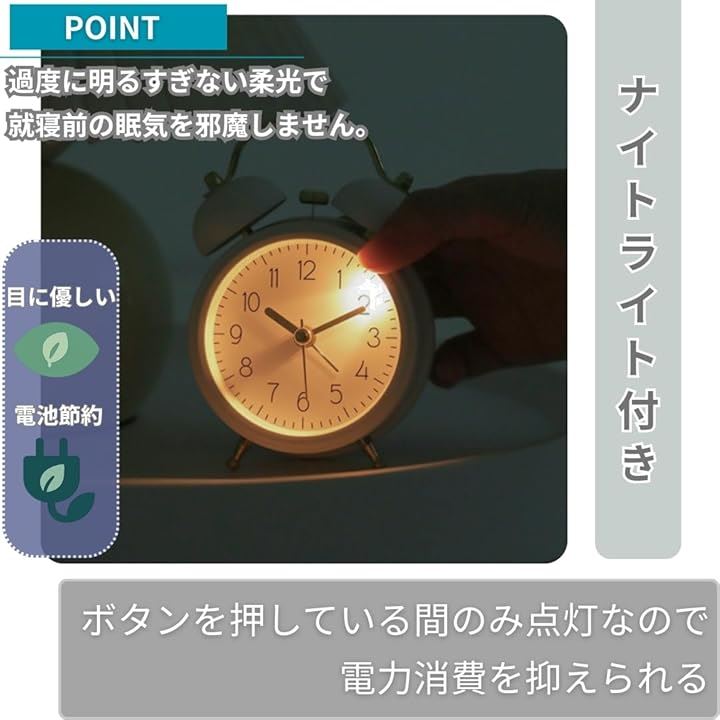 目覚まし時計 置き時計 ツインベル ナイトライト付き おしゃれ アナログ 北欧