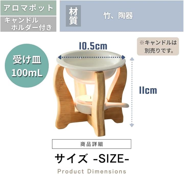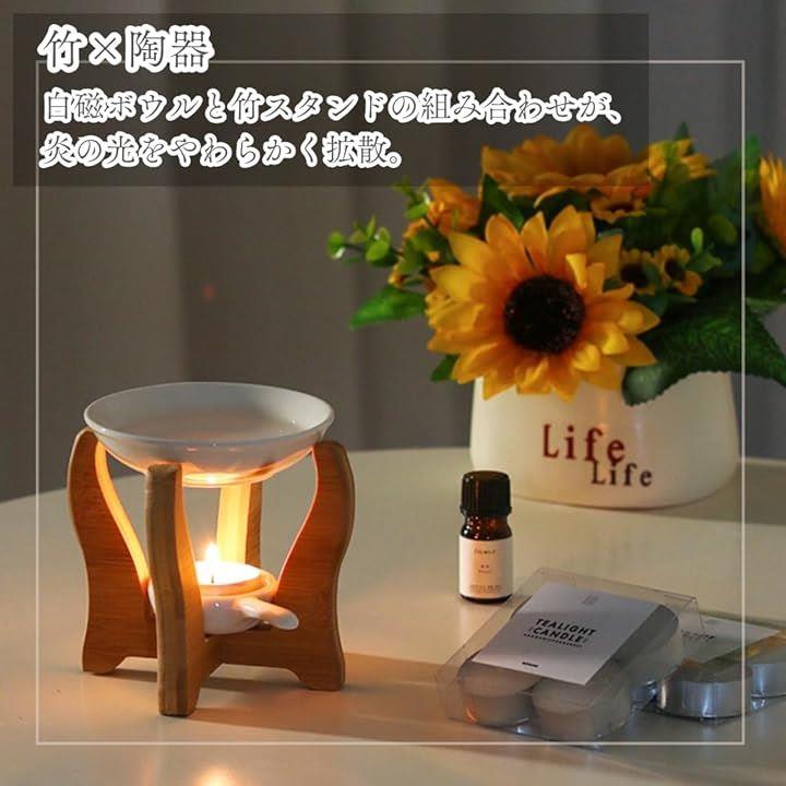 アロマポット 香炉 おしゃれ アロマ炉 ディフューザー アロマバーナー 陶器 竹フレーム