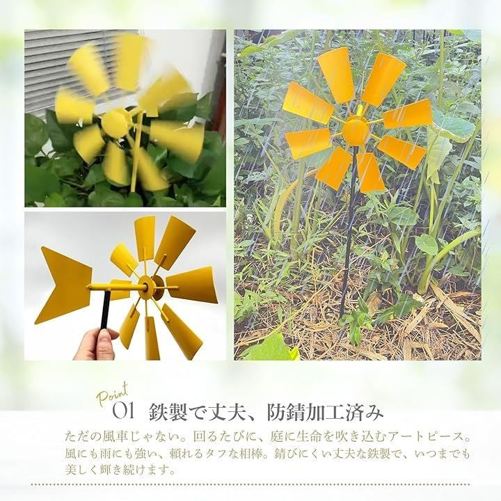風車 ガーデン オーナメント ガーデニング 鉄製 回転 ウィンドスピナー 庭 芝生 花壇 装飾 鳥よけ