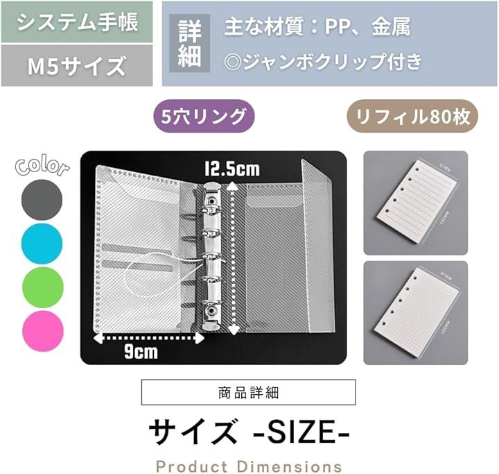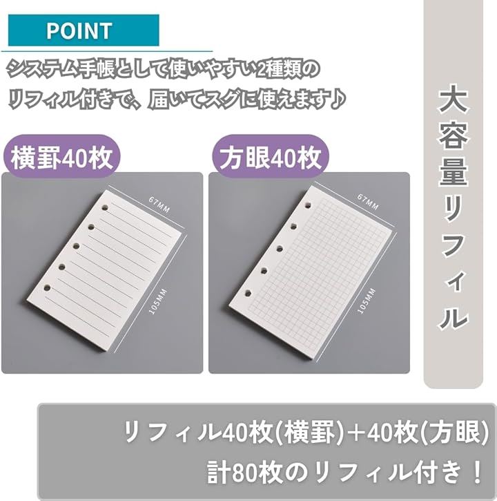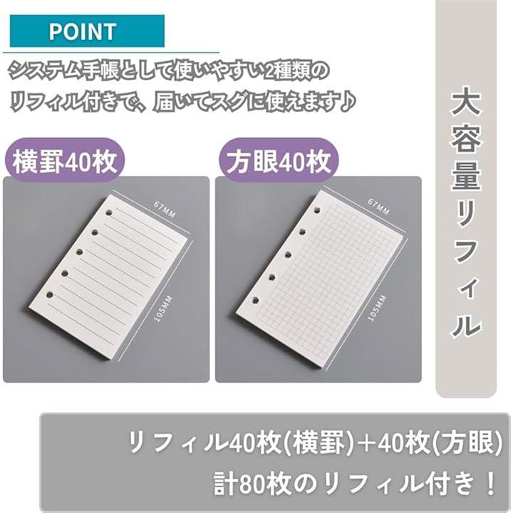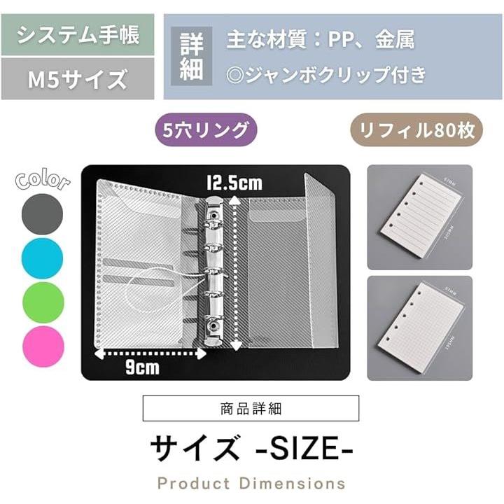 システム手帳 M5 5穴 ミニ バインダー メモ帳 シール帳 リフィル80枚付き