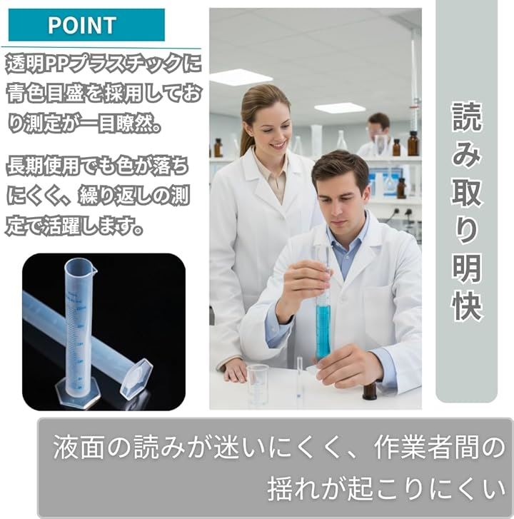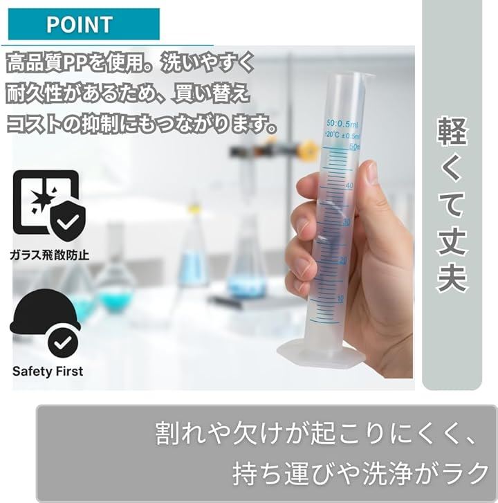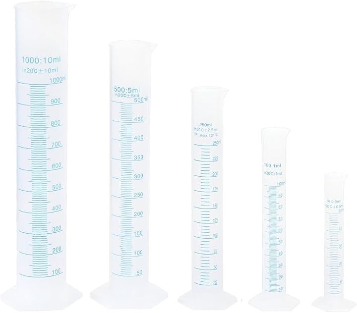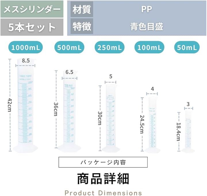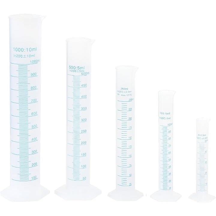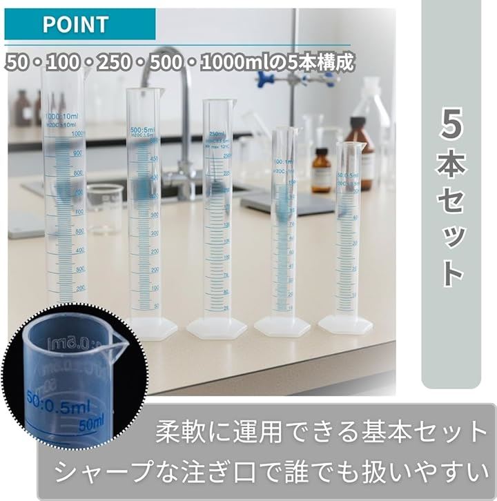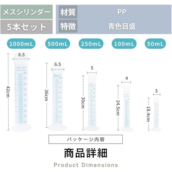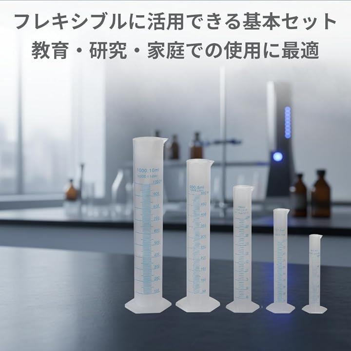 メスシリンダー 5本セット 試験管 50ml 100ml 250ml 500ml 1000ml プラスチック製 透明