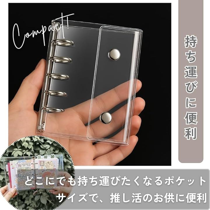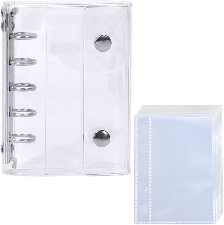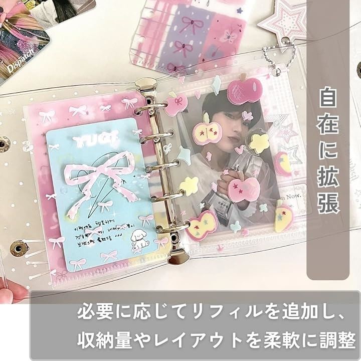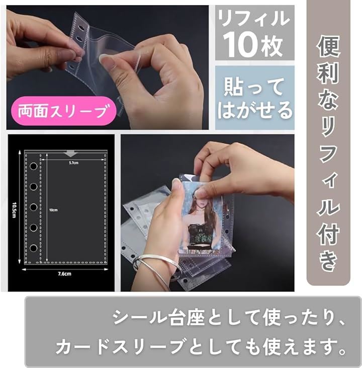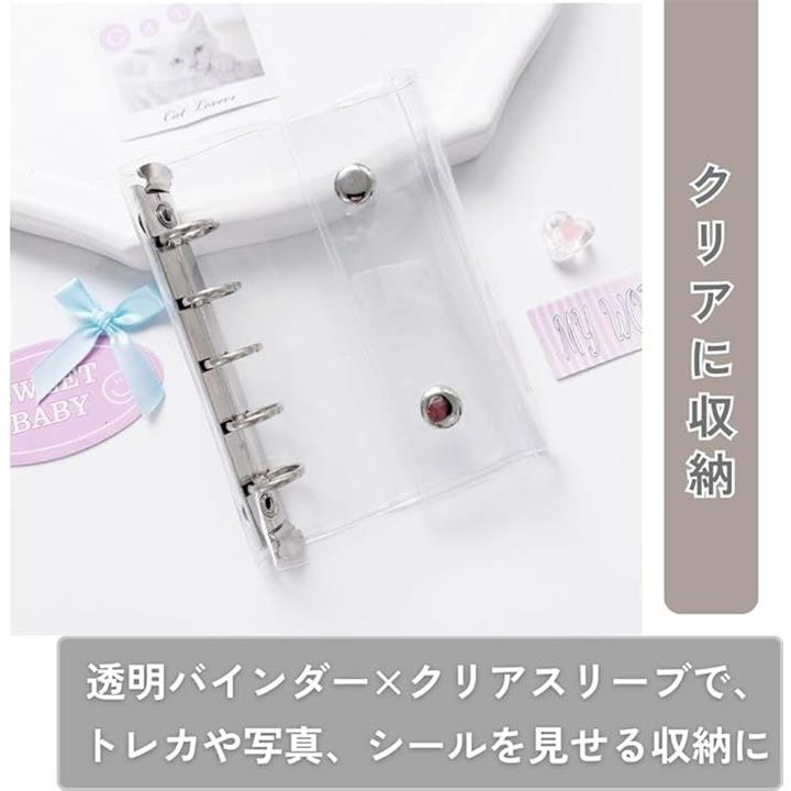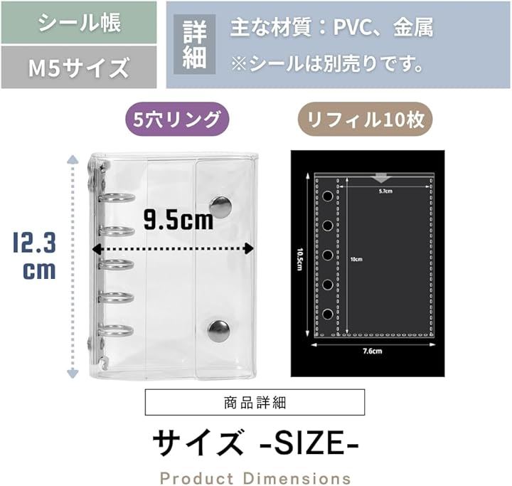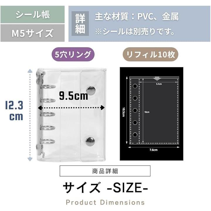 シール帳 透明 クリア バインダー 5穴 M5 はがせる 台紙 手帳 両面リフィル10枚セット