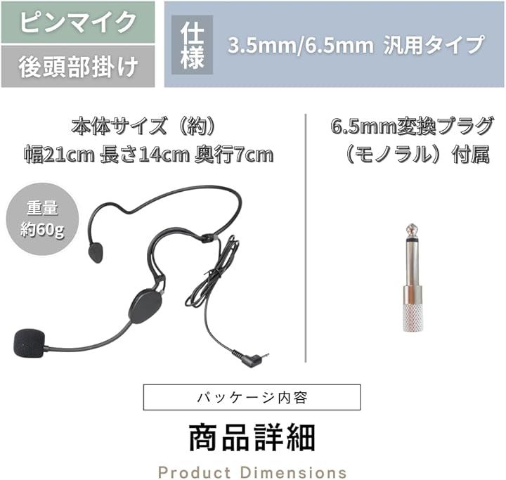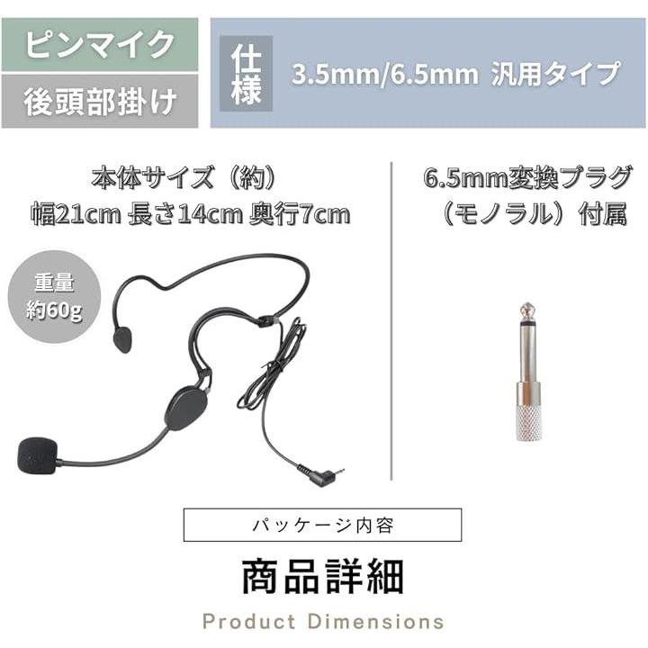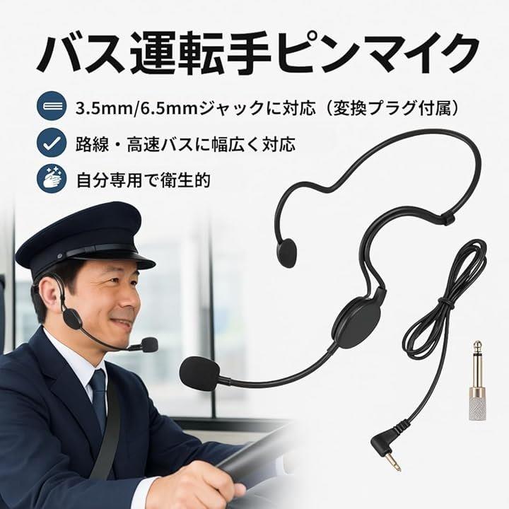 ピンマイク バス運転手 アナウンス 専用 後頭部掛け式 3.5mm/6.5mm変換プラグ付き