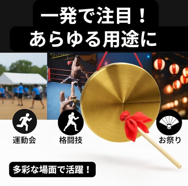 ドラ 銅鑼 お手軽 ゴング 効果音 太鼓 楽器 スポーツ 格闘技 合図 演出 バチ付き