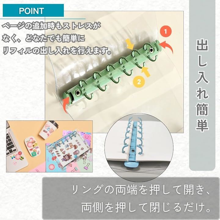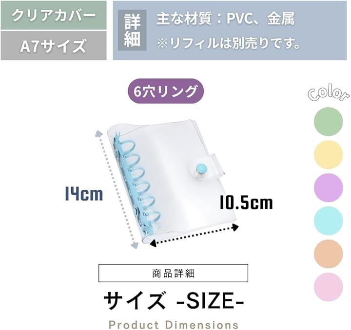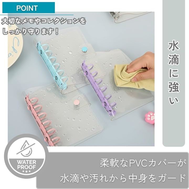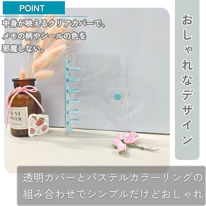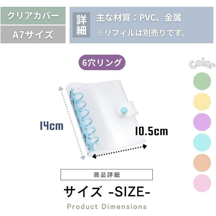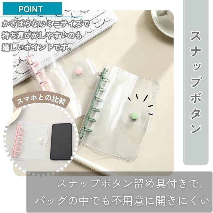 シール帳 透明 A7 6リング ミニ6 クリア バインダーカバー 防水 ボタン付き