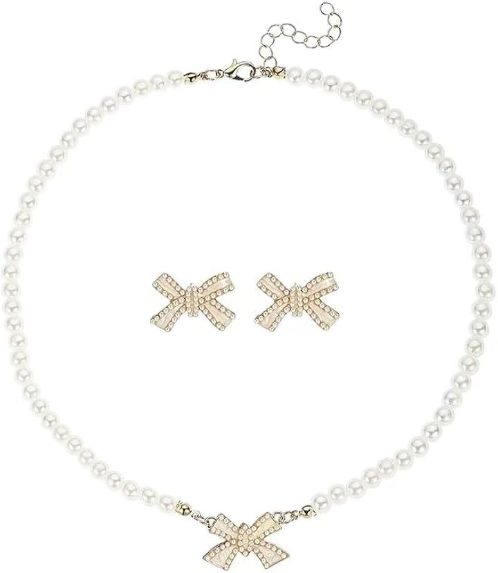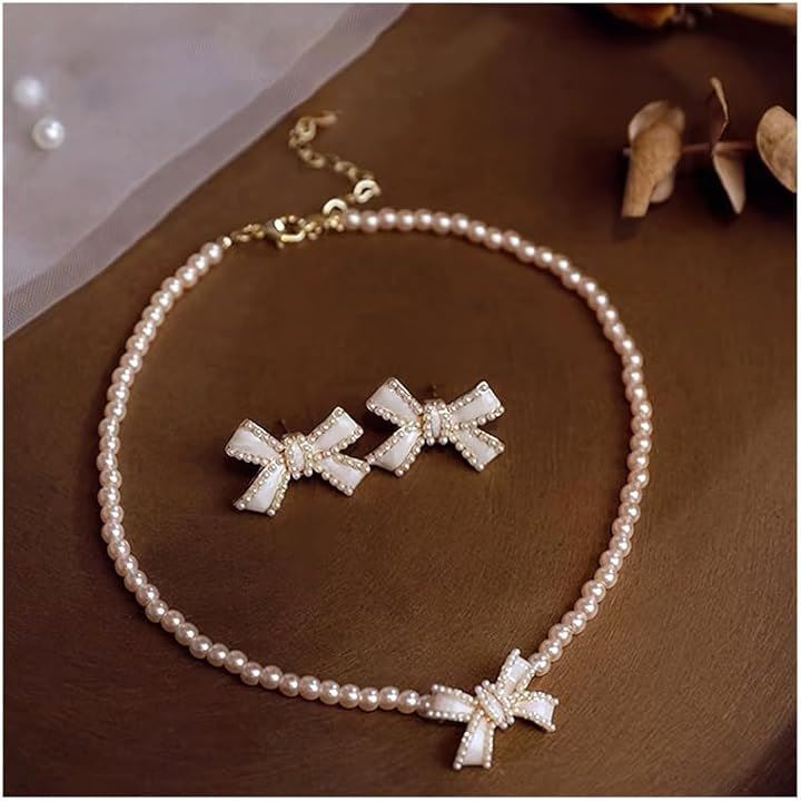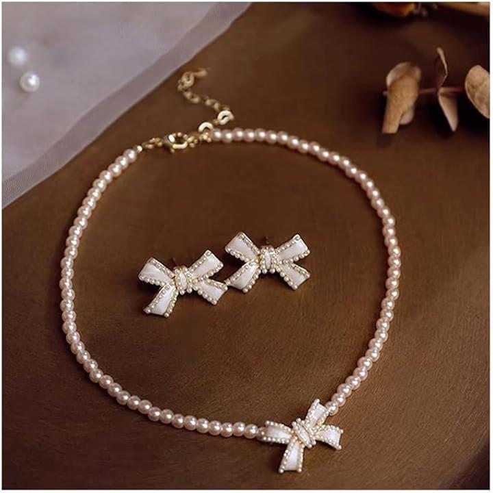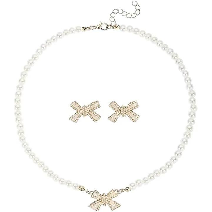 ネックレス リボン セット品 両耳ピアス 計3点 かわいい レディース パール アクセサリー