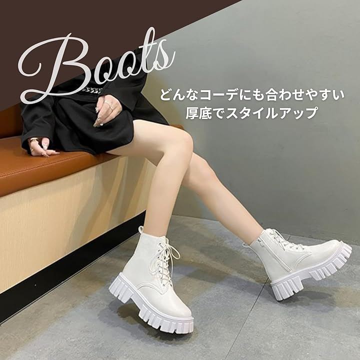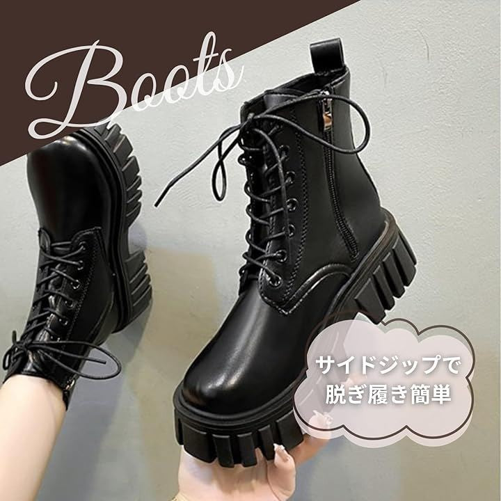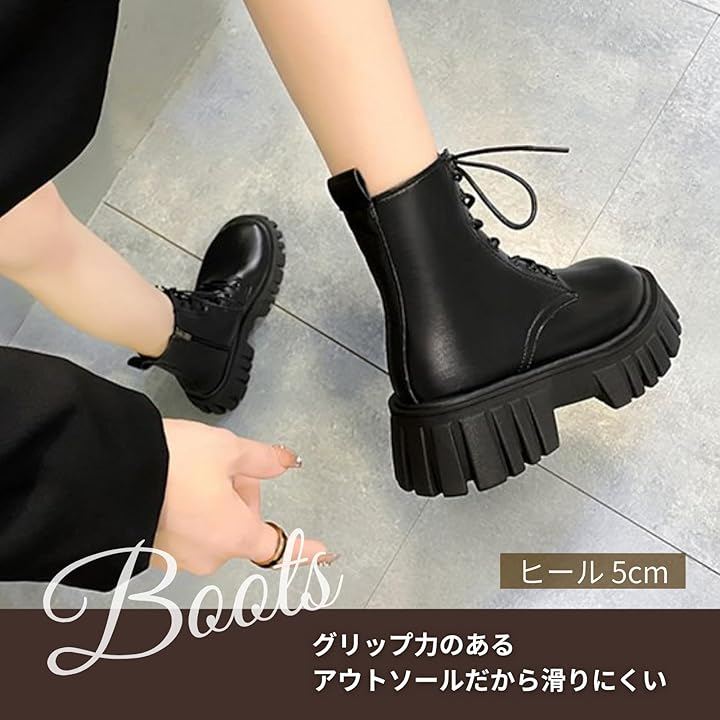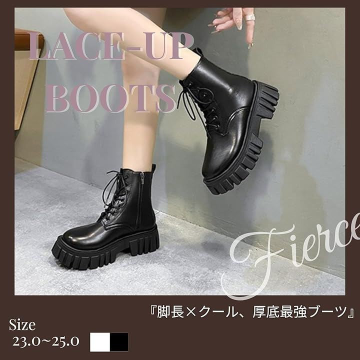 [CALM.st] 厚底 ブーツ ショートブーツ レディース レースアップ ブーティー 軽量 サイドジッパー コスプレ |