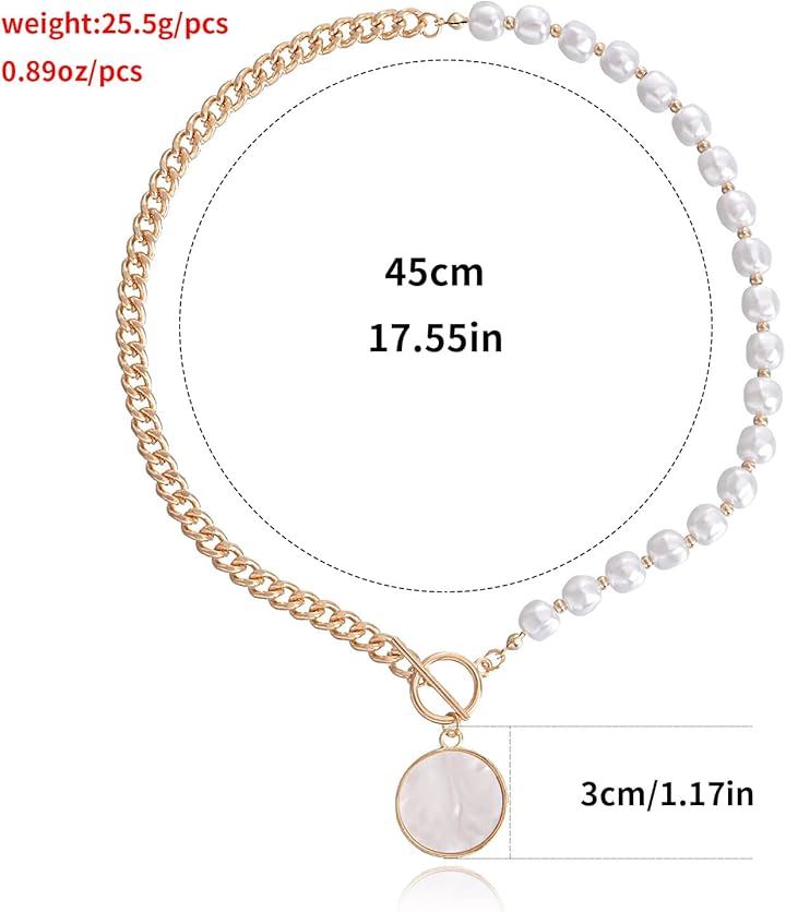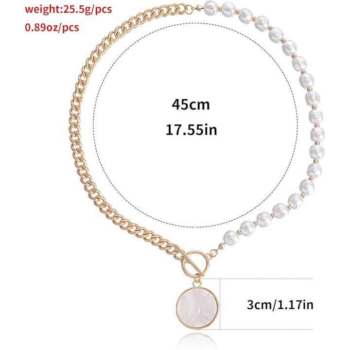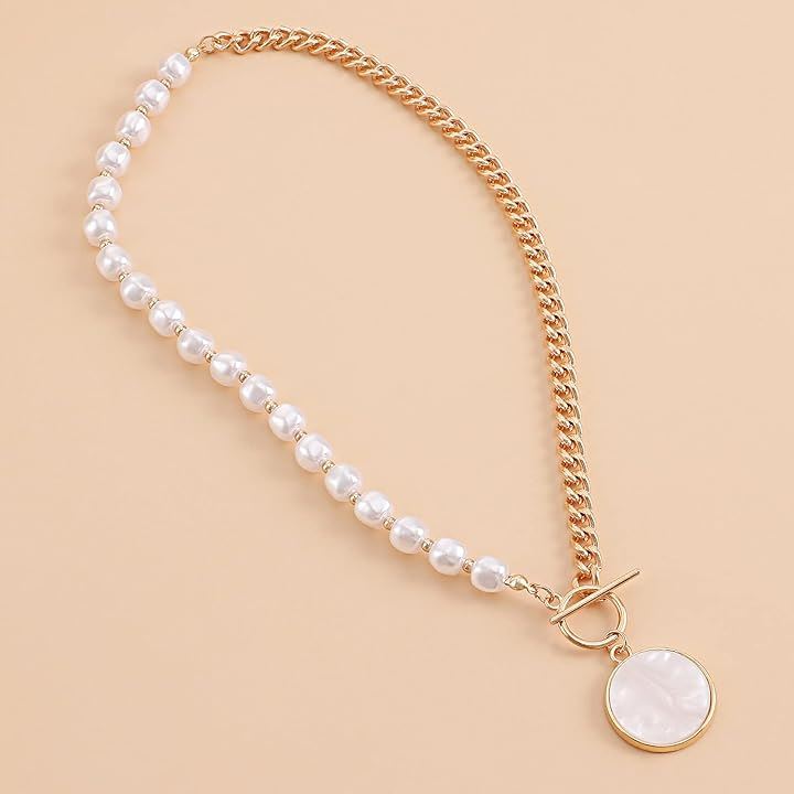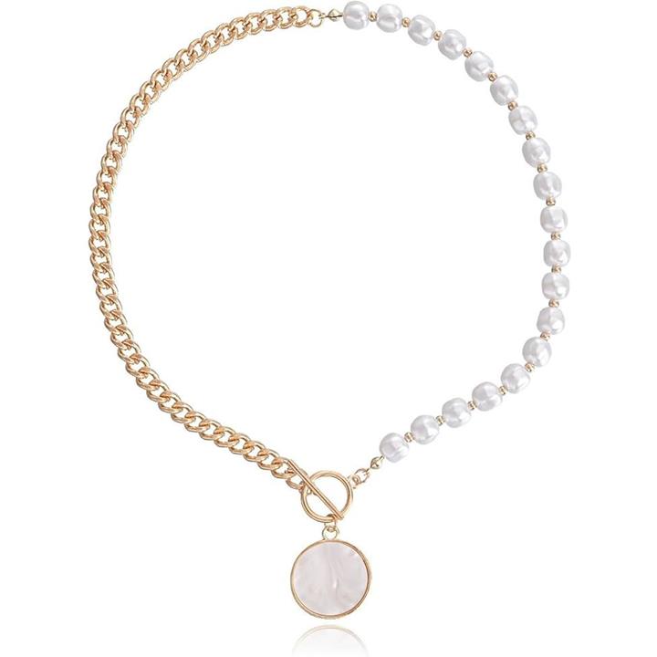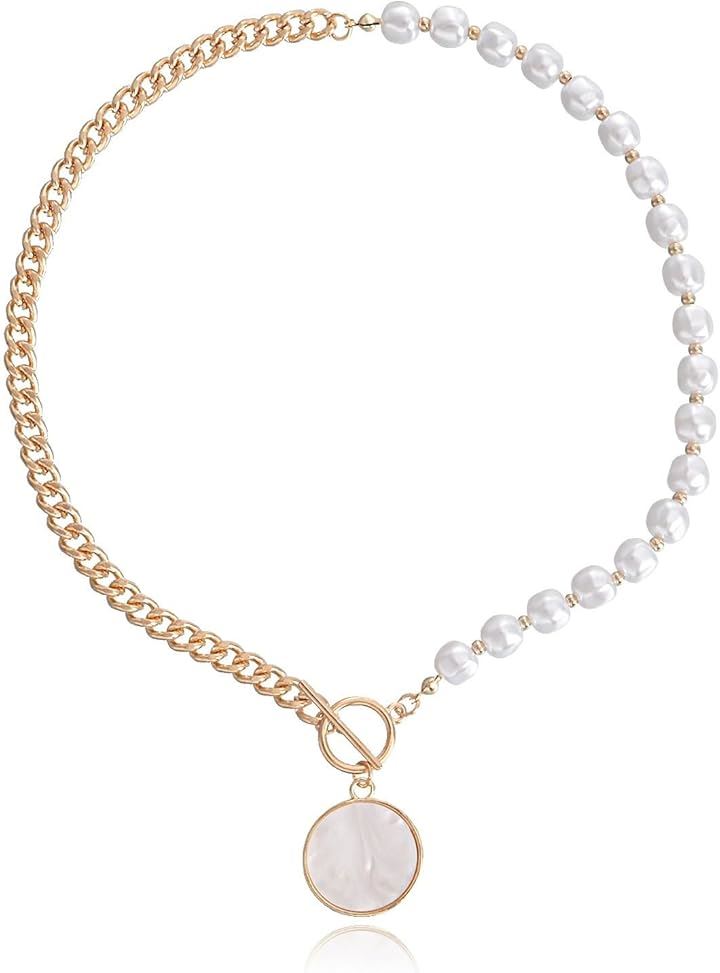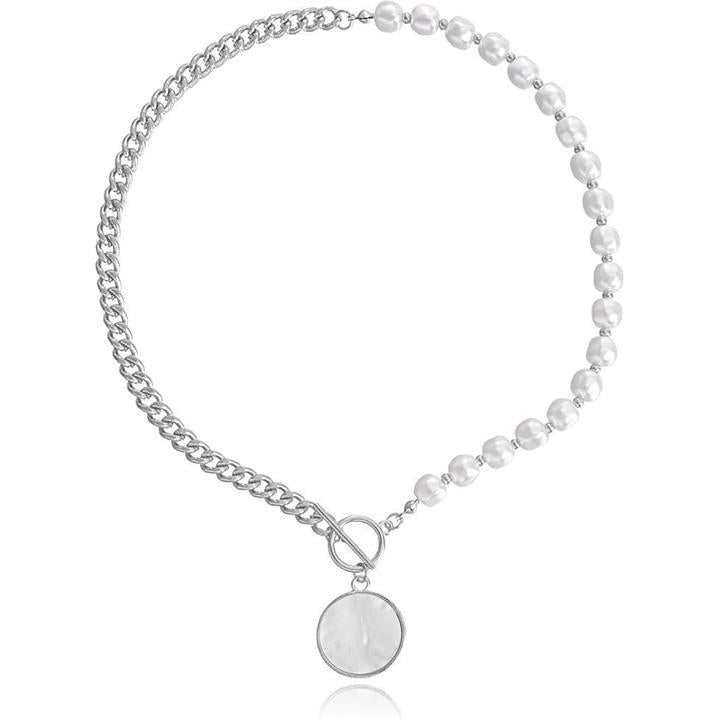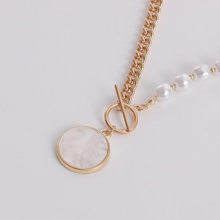 ネックレス パール シェル風プレート OTフック アシンメトリー メンズ レディース おしゃれ ペア