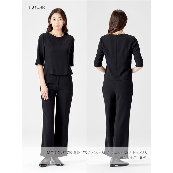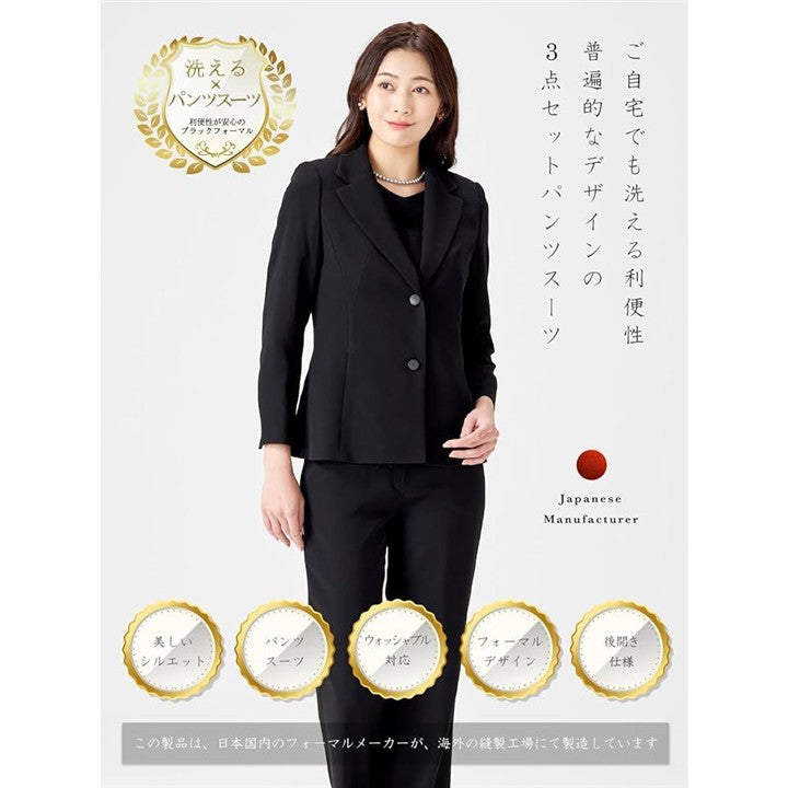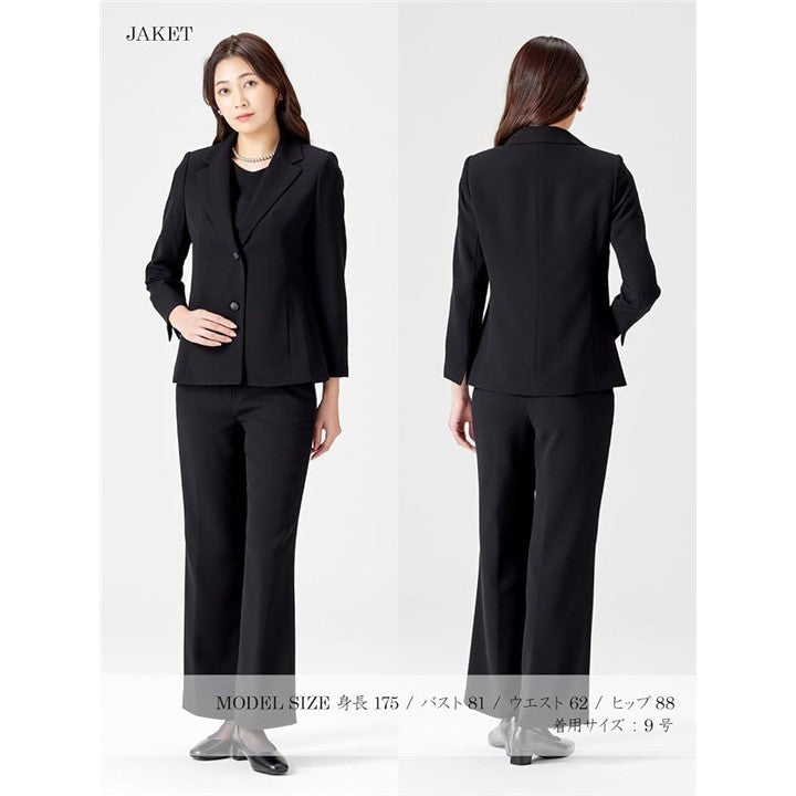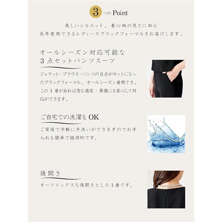 喪服 レディース 礼服 ブラックフォーマル ウォッシャブル 洗える 後開き 春 夏 秋 冬 用 オールシーズン 3点セット パンツ スーツ 準喪服 30代 40代 50代 ALB026