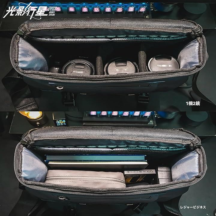 GYXX/光影行星 斜めがけ カメラバッグ収納 インナーバッグ 保護カバー付き 単反ミラーレスレンズ ノートPC収納 男性用