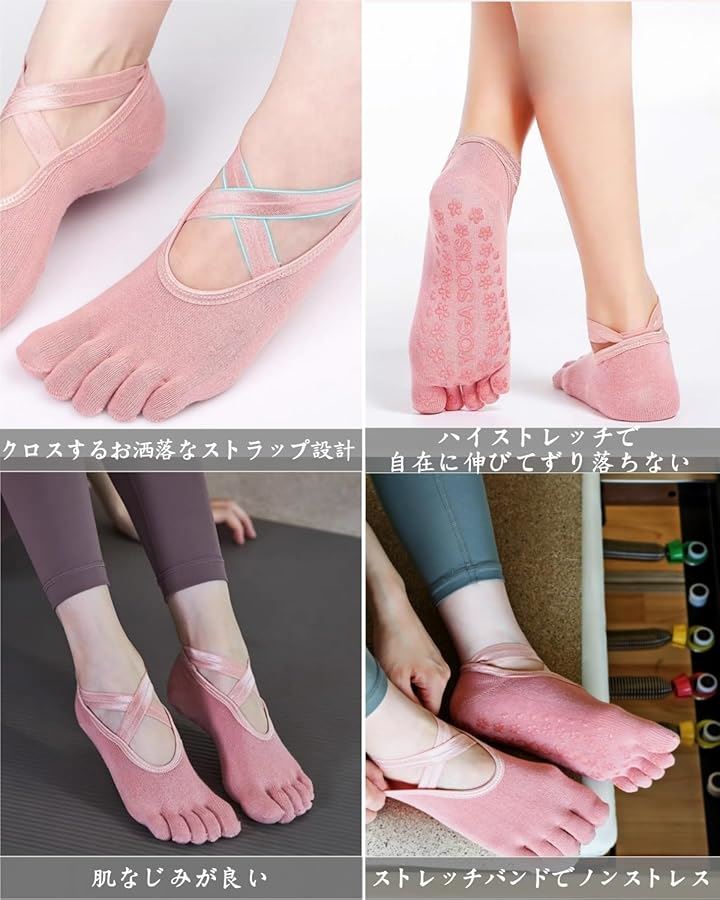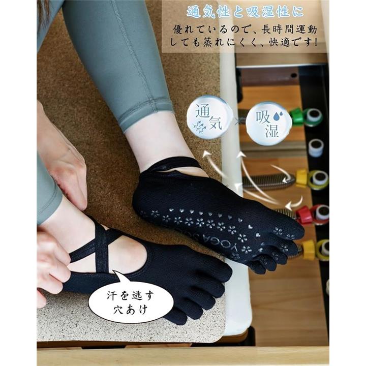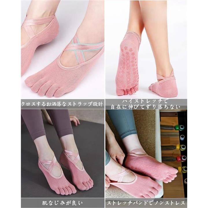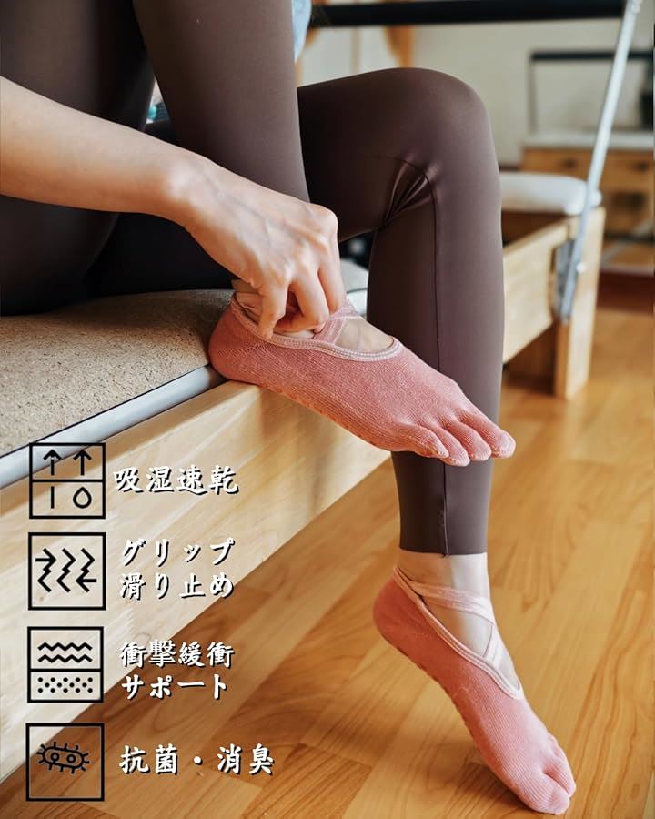 ピラティス ヨガ 靴下 5本指 滑り止め ヨガソックス 通気性 耐久性 抗菌 防臭バレエ スポーツ ショート 冷房/汗対策