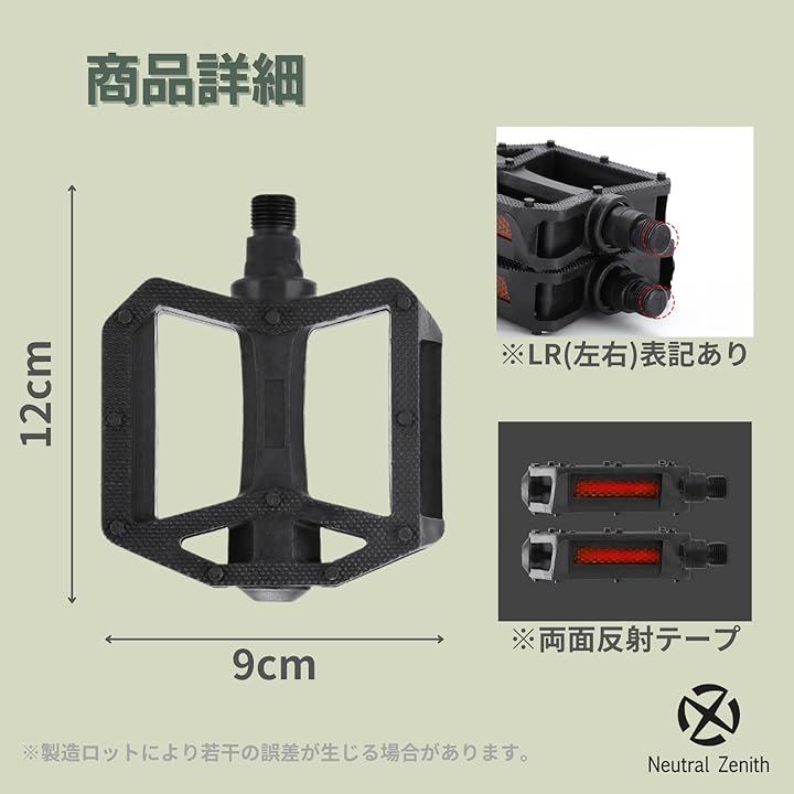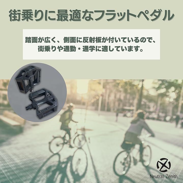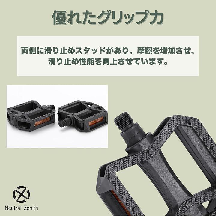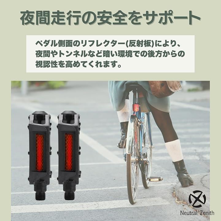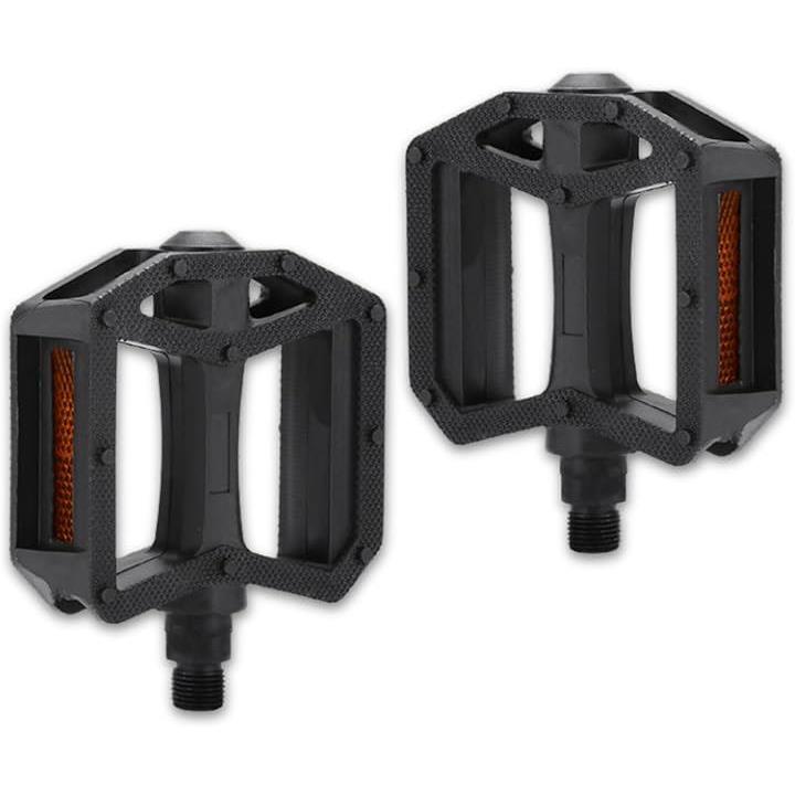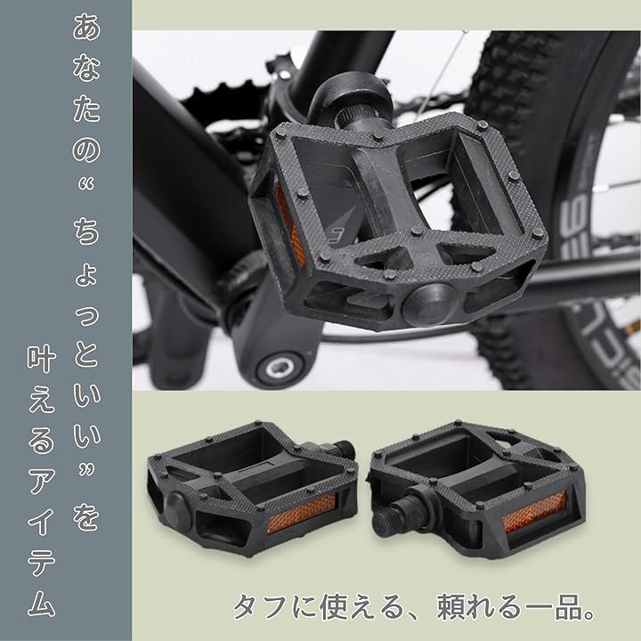 自転車ペダル 軽量 フラット 反射リフレクター 樹脂 BMX MTB クロスバイク 大面積 ブラック 左右セット
