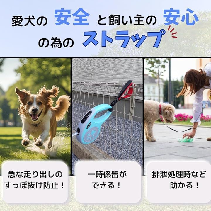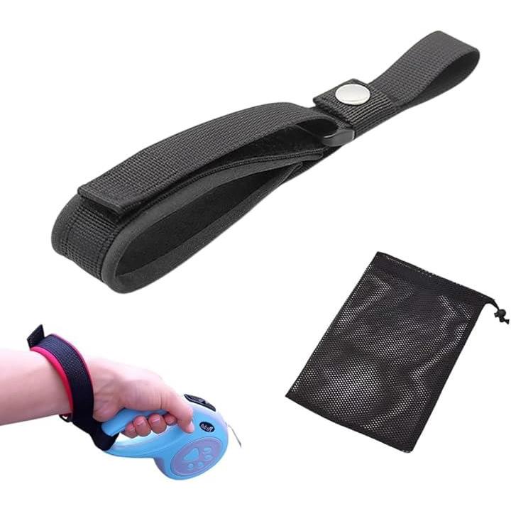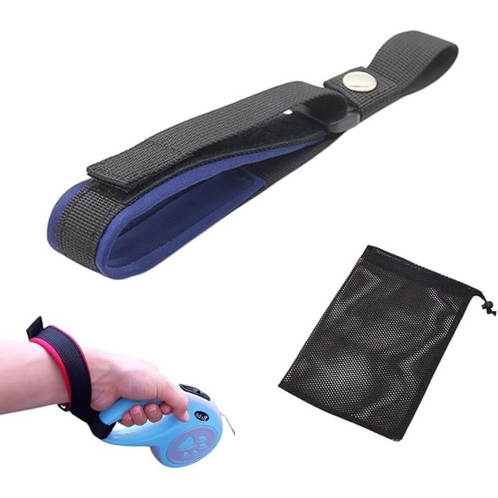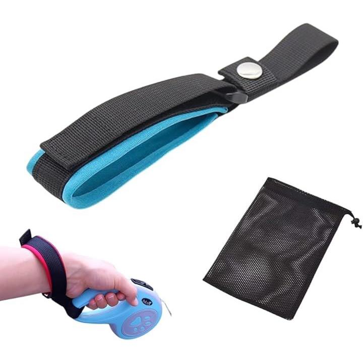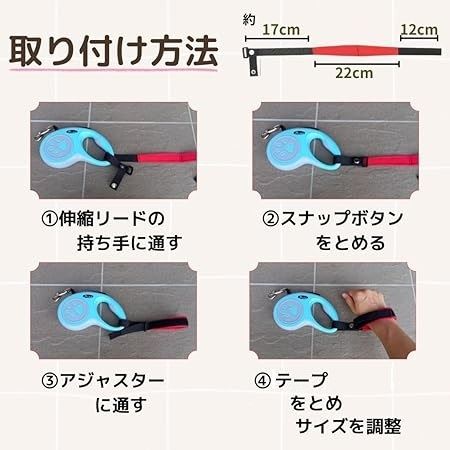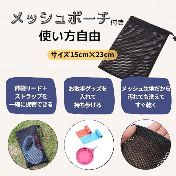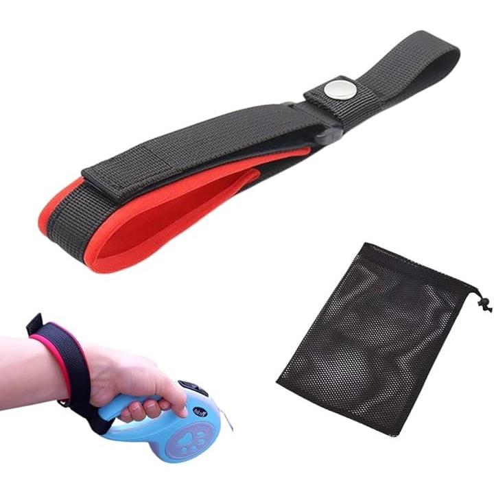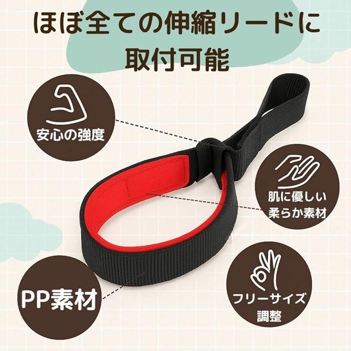 犬 伸縮リード用 ストラップ 収納に便利なメッシュポーチ付き ハンズフリー サイズ調整可能 一時係留 落下防止 すっぽ抜け防止 逃走防止