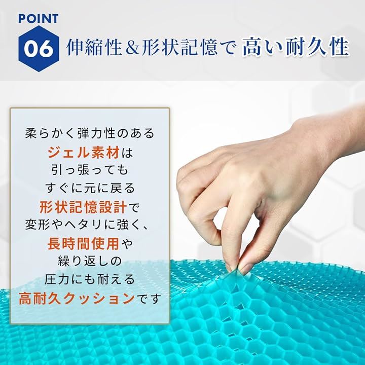 ゲルクッション 車用 U字 無重力 高反発 通気性 体圧分散 ハニカム 構造 洗える カバー 2枚 付き 座布団