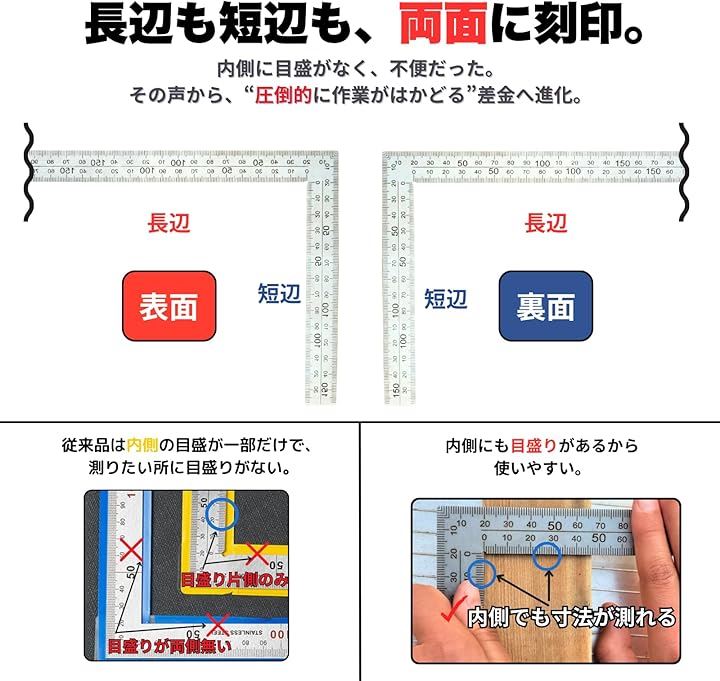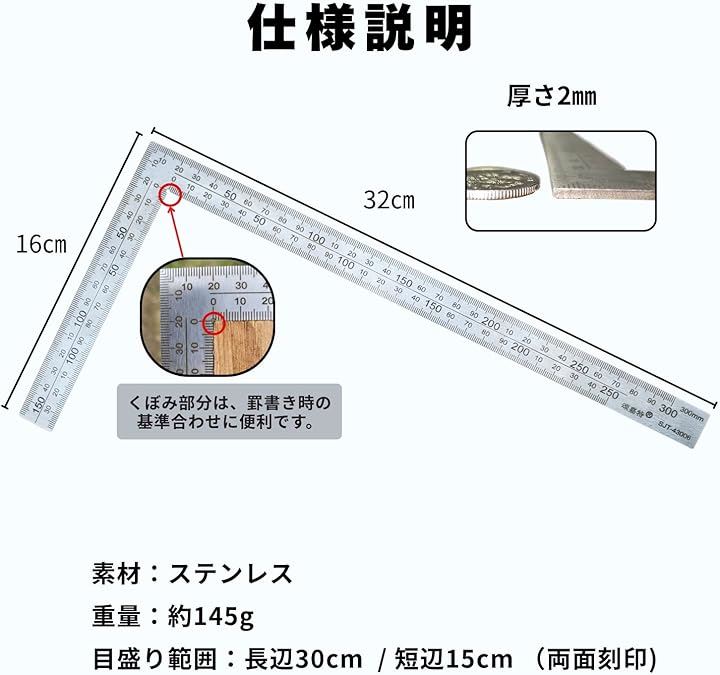 差金 差し金 スコヤ ステンレス 30cm 15cm 曲尺 曲げ尺 両面目盛り L字定規 直角 DIY 木工 大工用