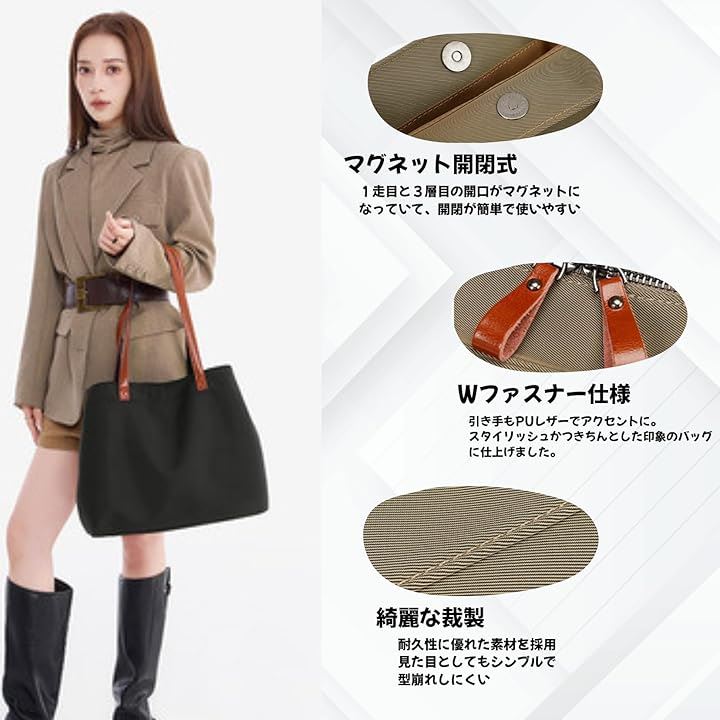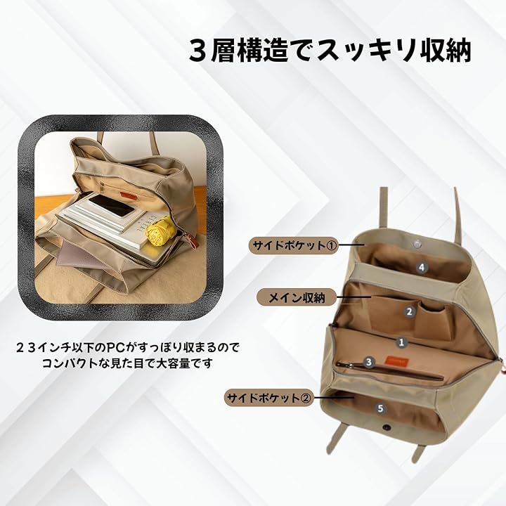 レディース トートバッグ 通勤バッグ ショルダー マザーズ カバン 大容量 軽量 通学 A4対応 3層 肩掛け 手提げ 無地