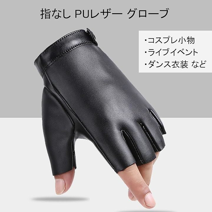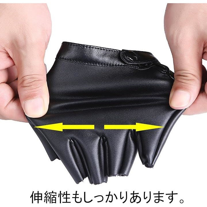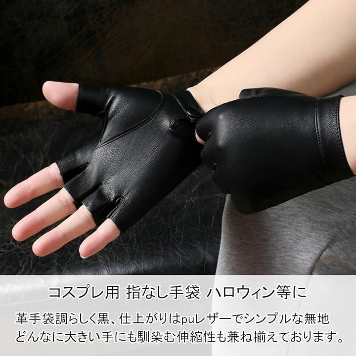 コスプレ 指なし手袋 黒 puレザー シンプル 無地 大きい メンズ ハロウィン