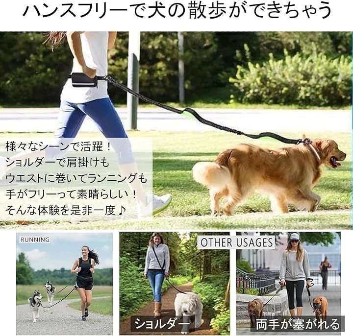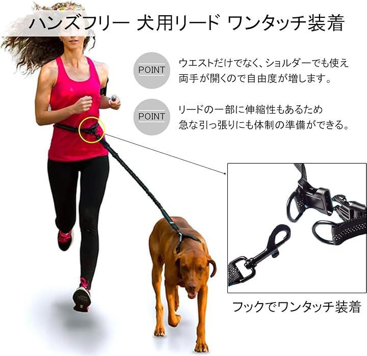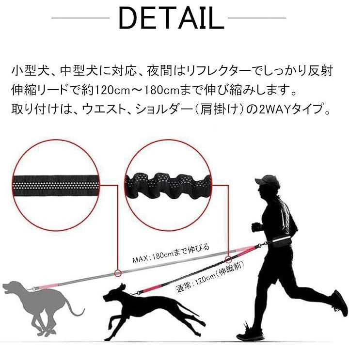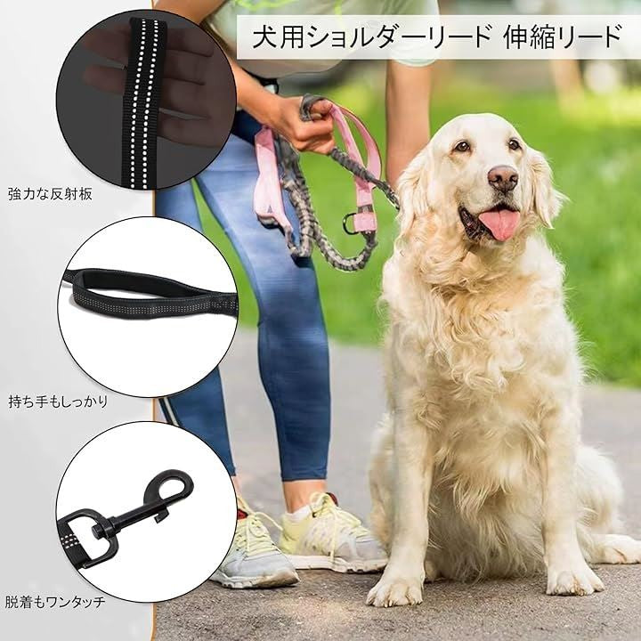 犬 ショルダーリード 小型犬 中型件 犬用 伸縮 肩掛け 反射 ランニング ハンズフリー