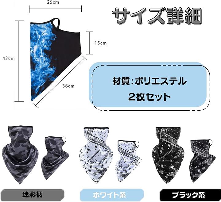 バイク マスク フェイスマスク バイク用 フェイスカバー フェイスガード ネックガード 釣り アウトドア 日焼け防止 2枚セット