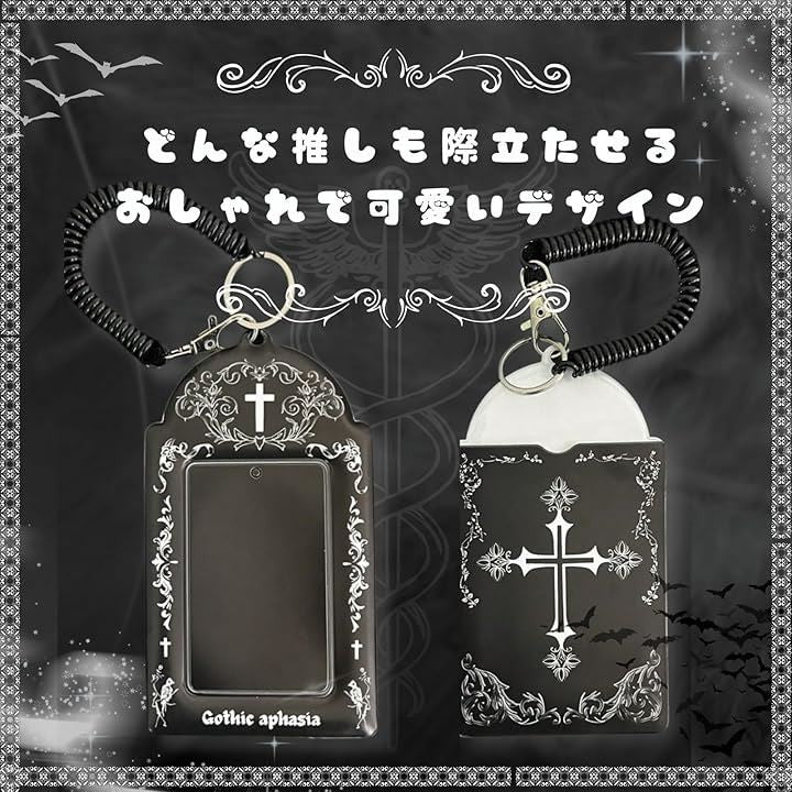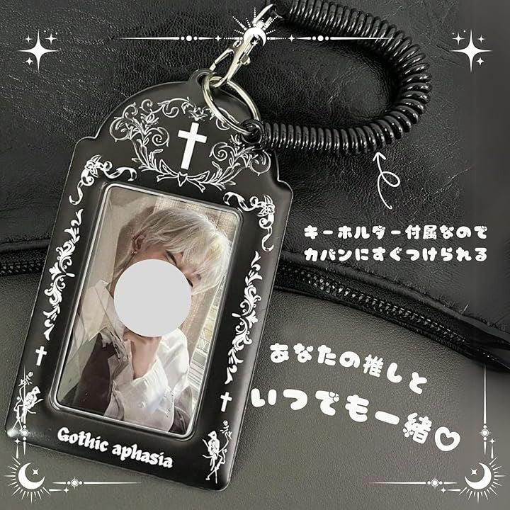 トレカケース 推し活 黒 ゴシック キーホルダー付属 チェキホルダー カードケース 韓国