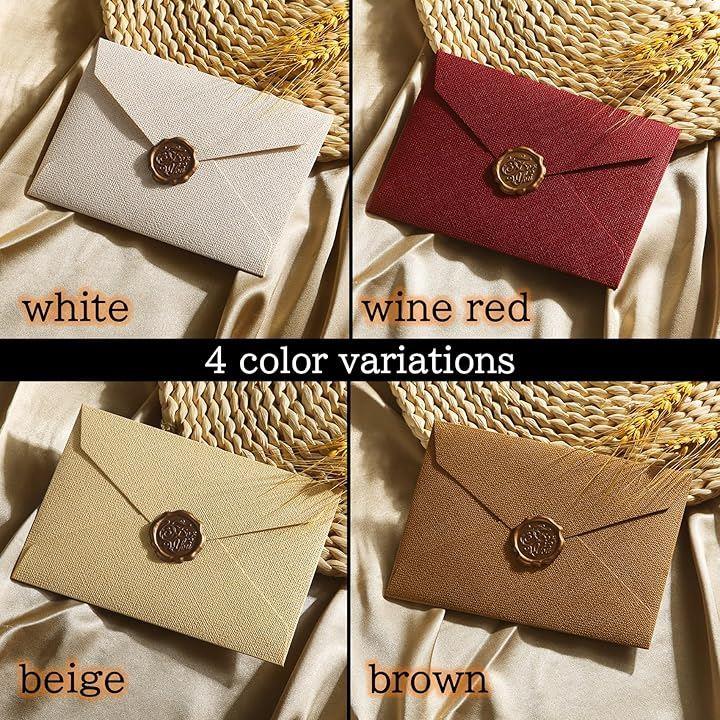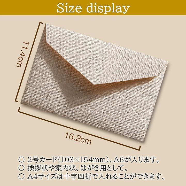 洋2封筒 おしゃれ 50枚 シーリングシール付 可愛い 状袋 リネン紙 亜麻 洋形2号 招待状 挨拶状封筒