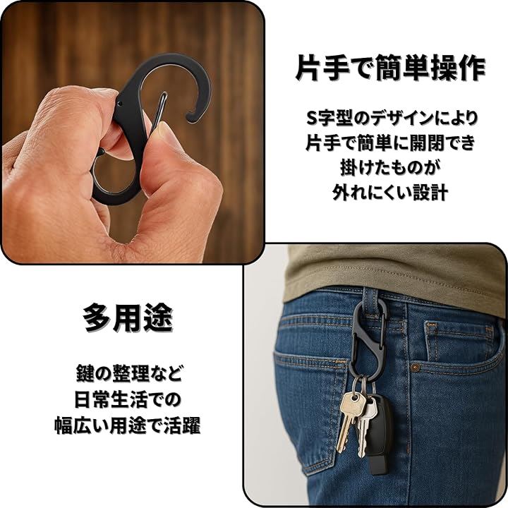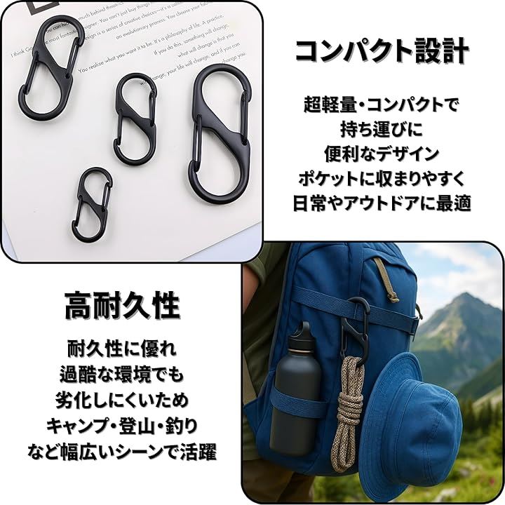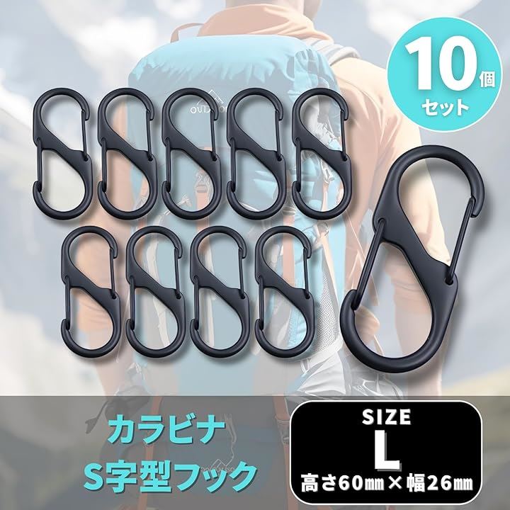 カラビナ S字型フック 10個セット 自動ロック アウトドア 登山 キャンプ