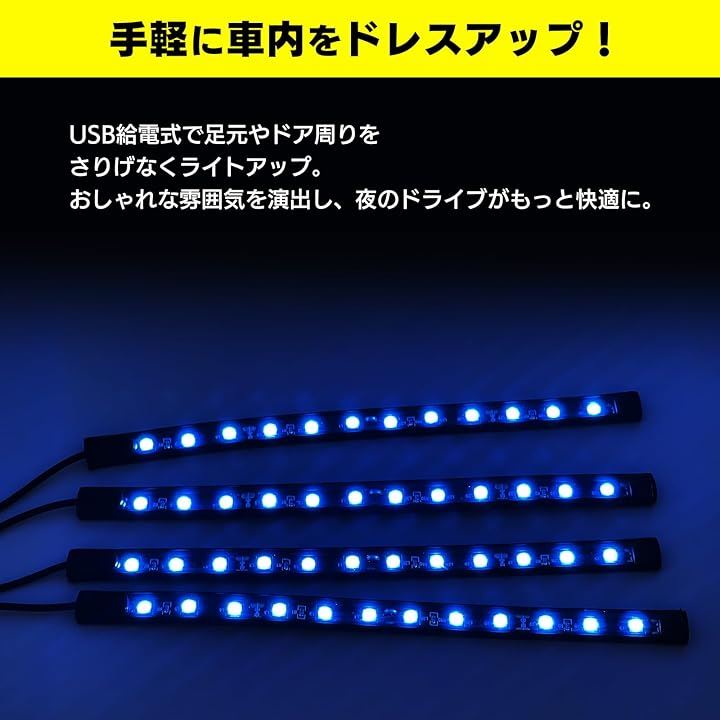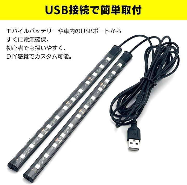 モデルノ ラ テール USB LED テープライト イルミネーション ランプ 車内照明 足元灯 ドレスアップ用 両面テープ取付 83-383-FL