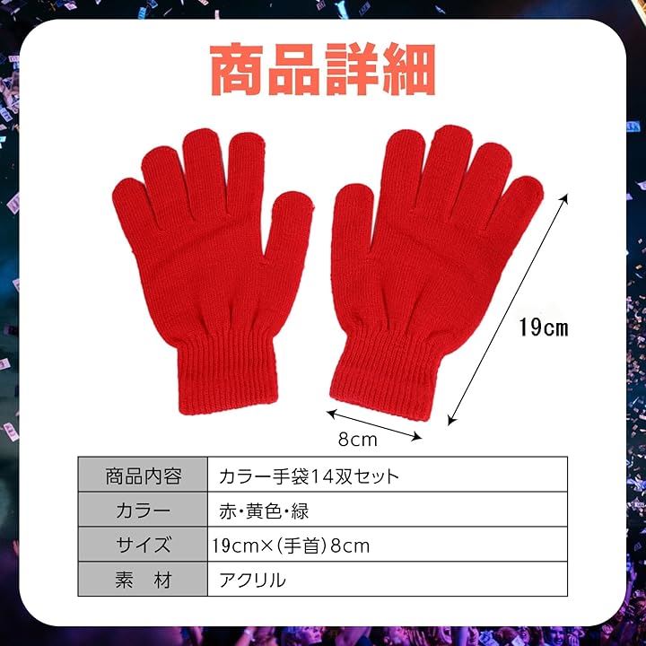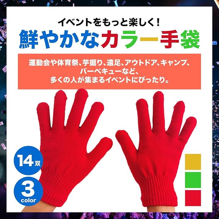 赤 黄 緑 カラー手袋 14双 運動会 体育祭 イベント チーム分け ボランティア 作業用