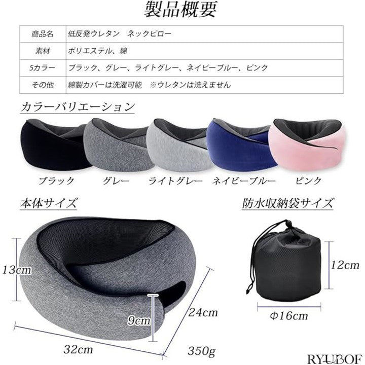 ネックピロー 低反発 首枕 U型 飛行機 車 新幹線 旅行用 携帯枕 コンパクト 洗えるカバー 持ち運び便利 お昼寝 仮眠 旅行グッズ 0.35kg 軽量 防災用