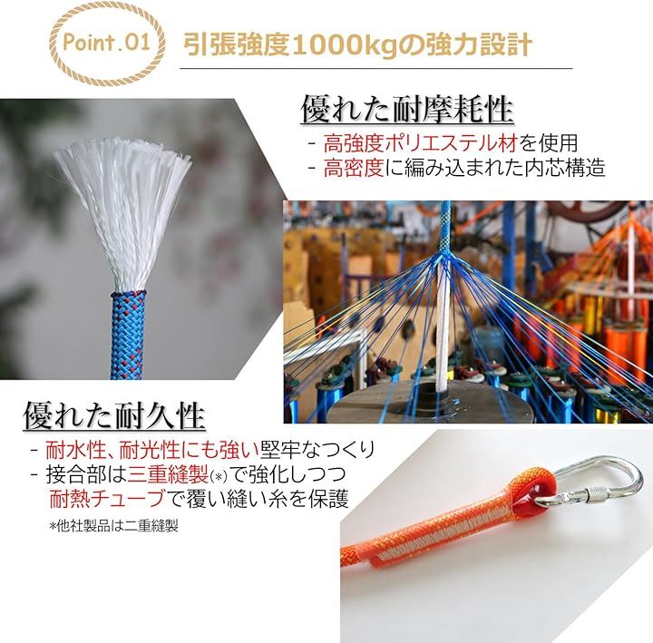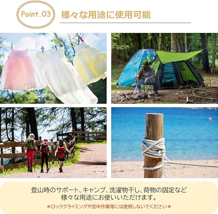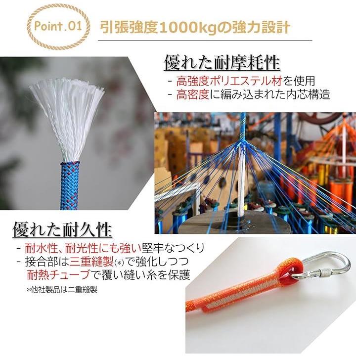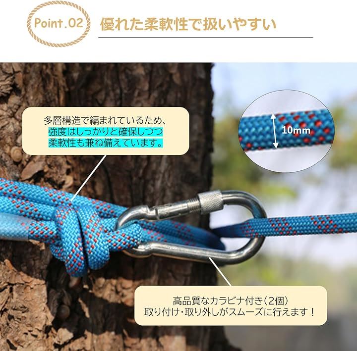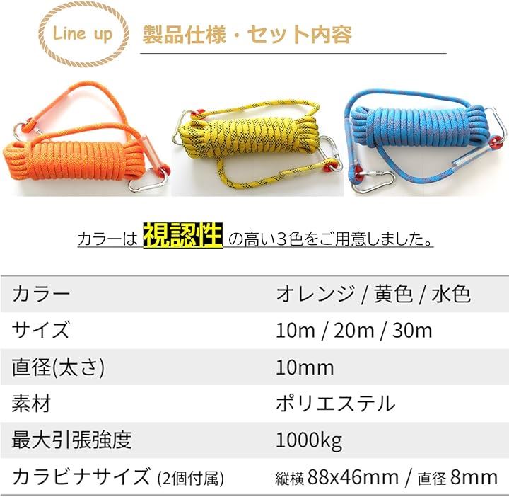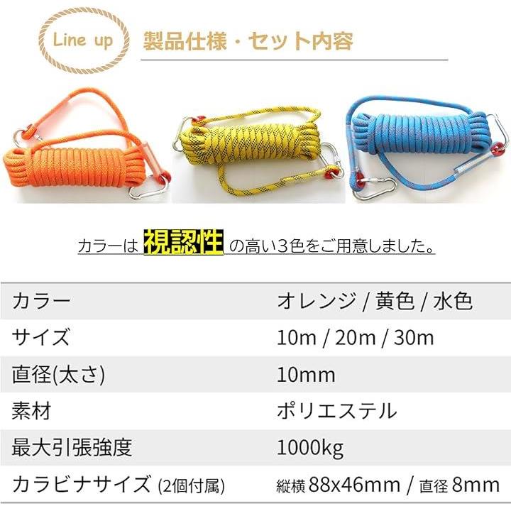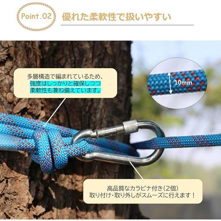 クライミングロープ 多目的ロープ 直径10mm 引張強度1000kg 長さ10m 頑丈 アウトドア キャンプ 登山 テント 物干し