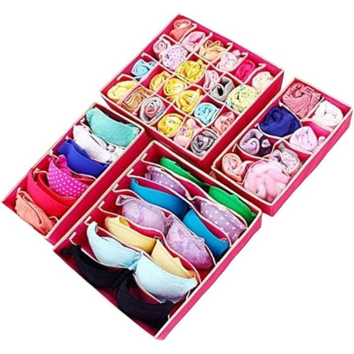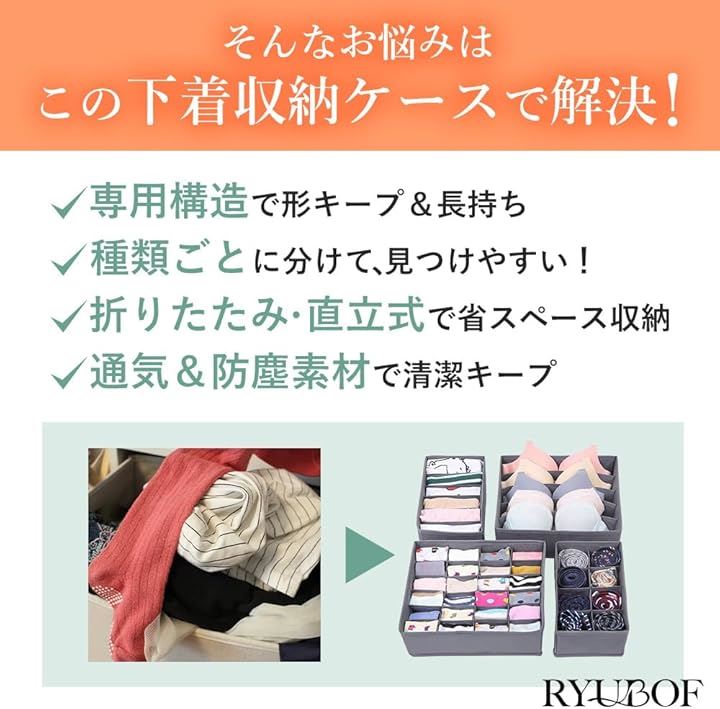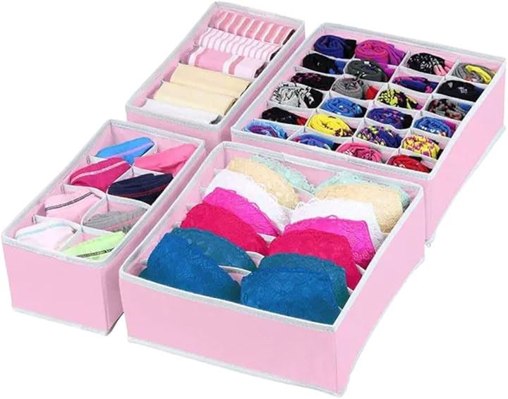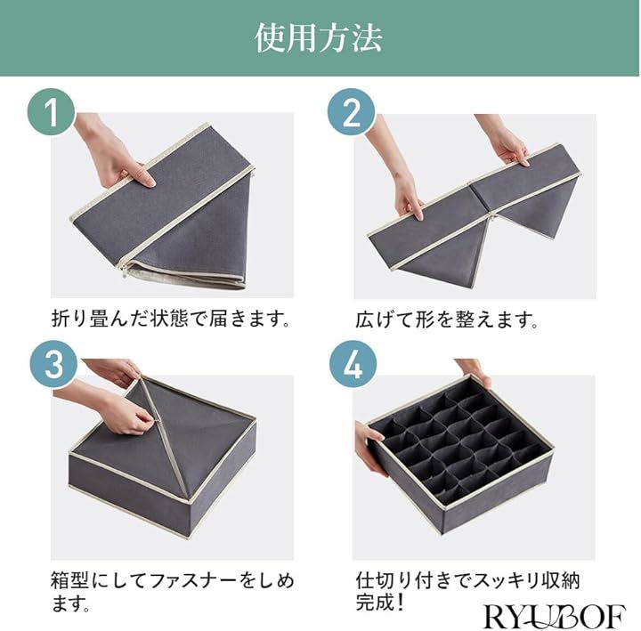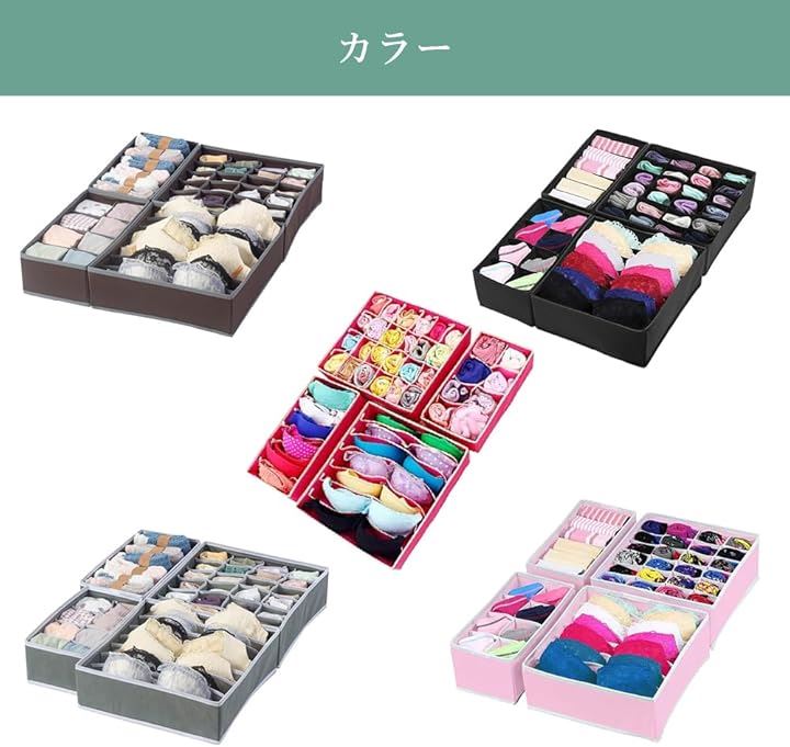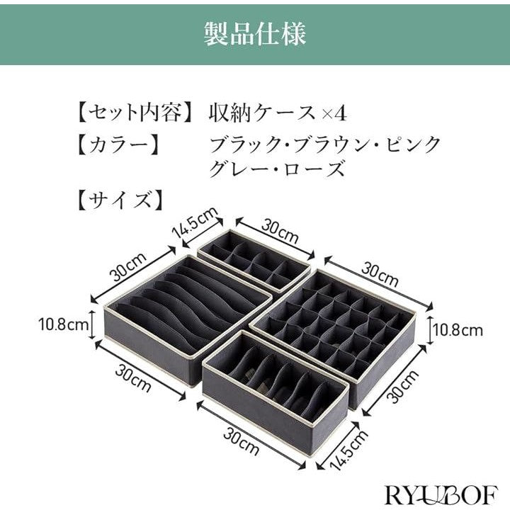 下着収納ボックス 下着収納ケース 折り畳み 衣類 引き出し 仕切り ブラジャー収納 4点セット 靴下収納 型崩れ防止 省スペース 整理 通気 防塵 防湿 無臭 クローゼット 小物入れ