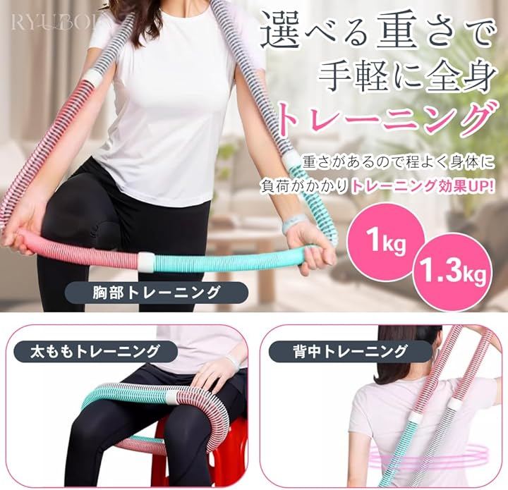 フラフープ ダイエット用 折りたたみ式 ウエイト付き ソフトスプリング 大人用 男女兼用 ポータブル 省スペース 室内 室外兼用 ウエスト