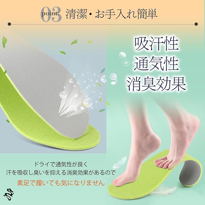 清潔・お手入れ簡単:中敷きにはシューズインソールの上に入れて装着できる、オリジナルの吸汗性・通気性・消臭効果のあるソフトインソール付き中敷きをお付けしています。