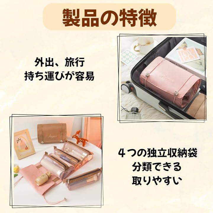 メイクポーチ トラベルポーチ 化粧ポーチ 大容量 4仕切り 旅行 防水 コスメポーチ 洗面用具 旅行用 持ち運び 折り畳み 取り外し 多機能