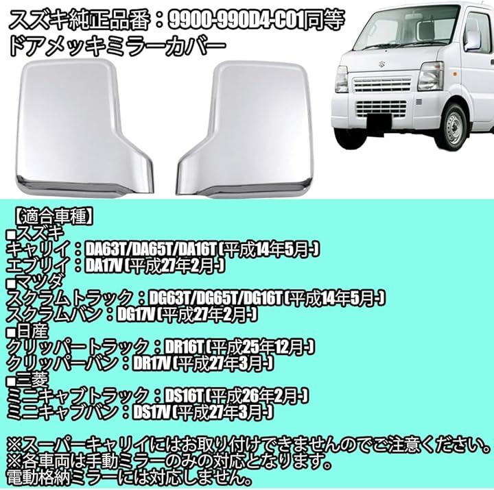 互換品スタートサイド スズキ キャリィ メッキ ドアミラーカバー サイドミラー キャリー ミニキャブ エブリィ スクラム DA17V DA63T DA65T DA16T