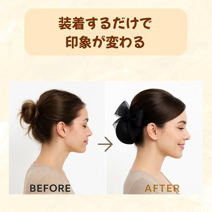シニヨンネット サテン リボン バレッタ ネット付き お団子ネット 大きめ ヘアネット 髪ネット レディース ヘアアクセサリー 髪留め