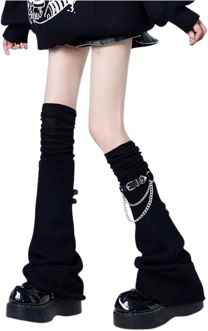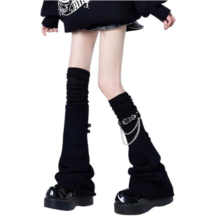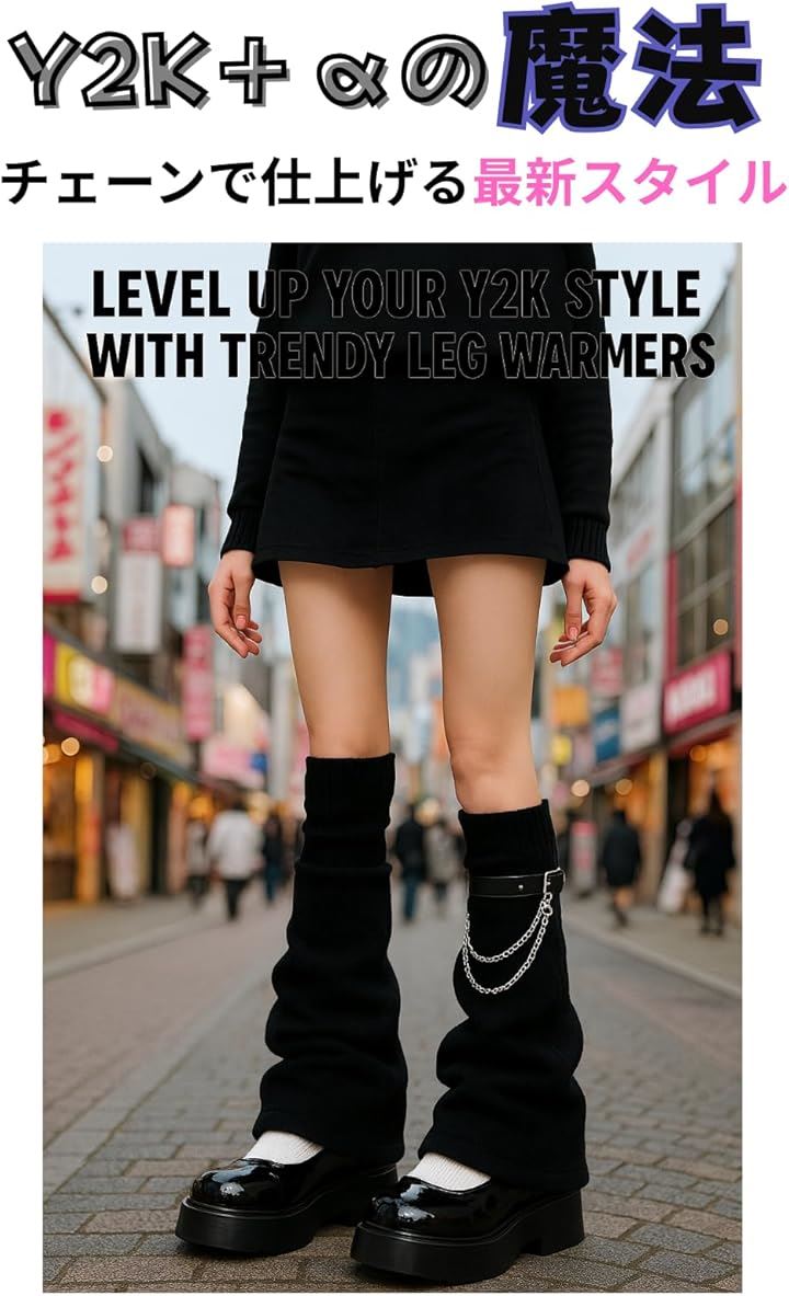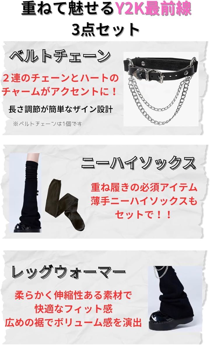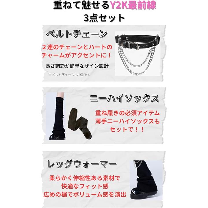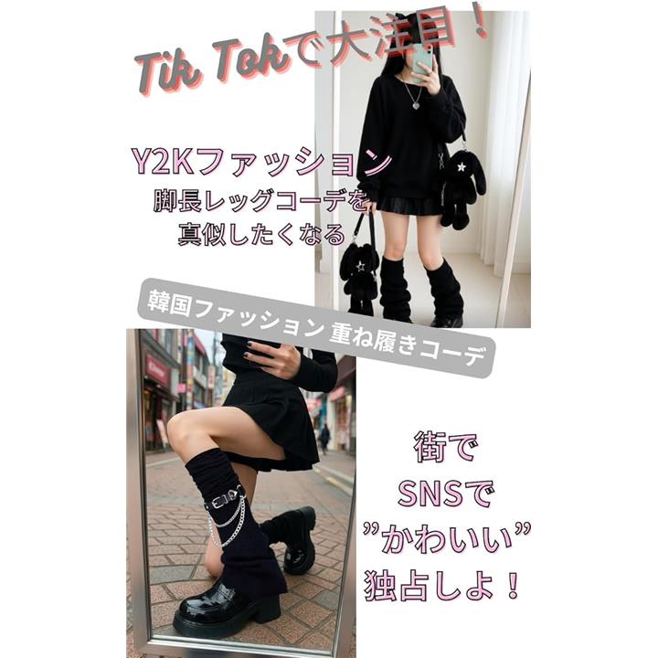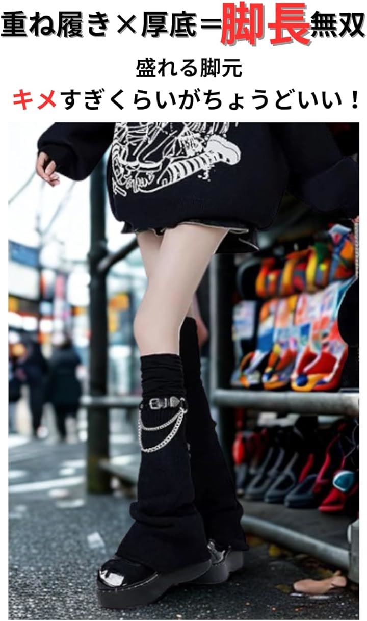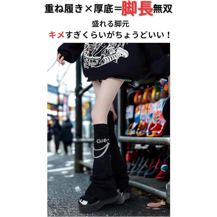 Y2K レッグウォーマー 地雷系 ベルト チェーン付き 厚底靴 韓国ファッション 原宿系 双子コーデ サブカル系 黒 ガーリー 量産型女子 脚長効果 ストリート系