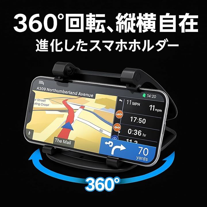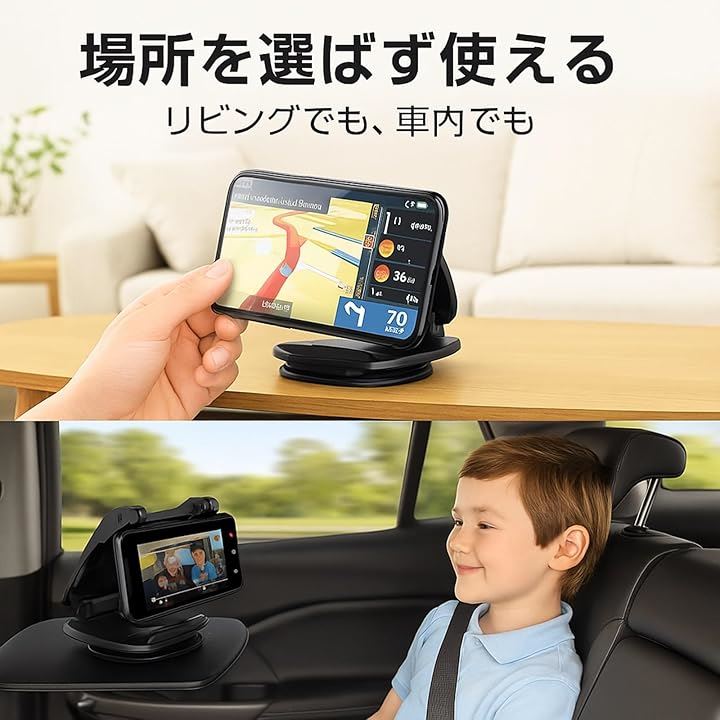 スマホホルダー 車載用 クリップ式 360°回転 全車種対応 スマホスタンド