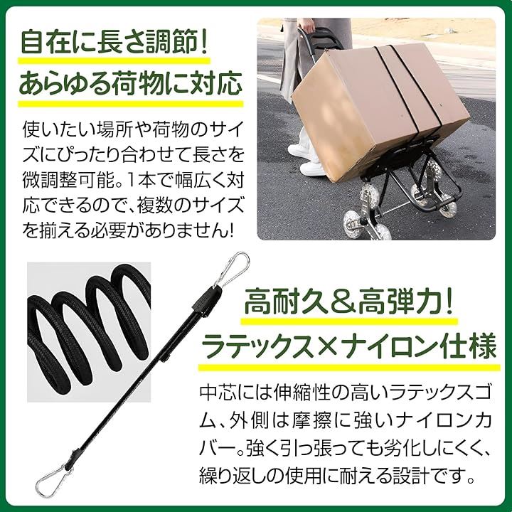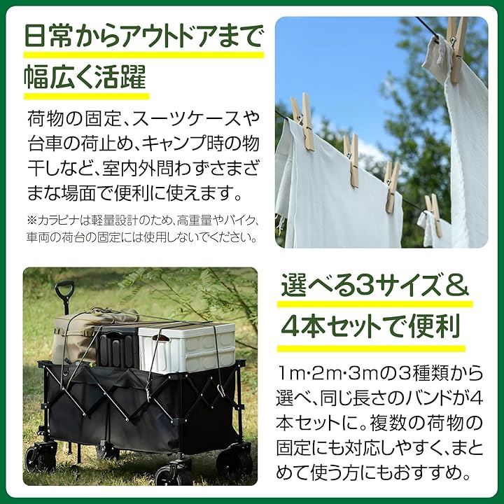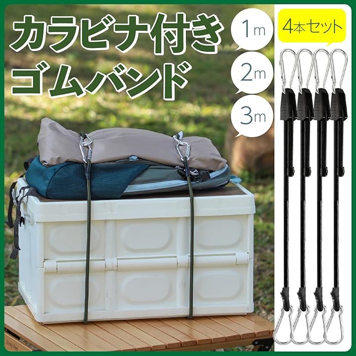 ゴムバンド カラビナ付き 調節可 荷物固定 アウトドア 固定ベルト 4本セット