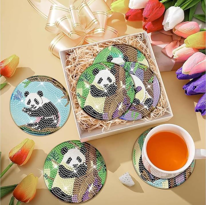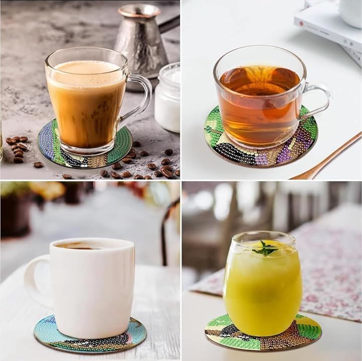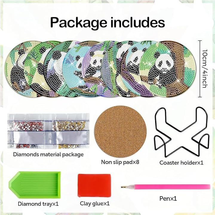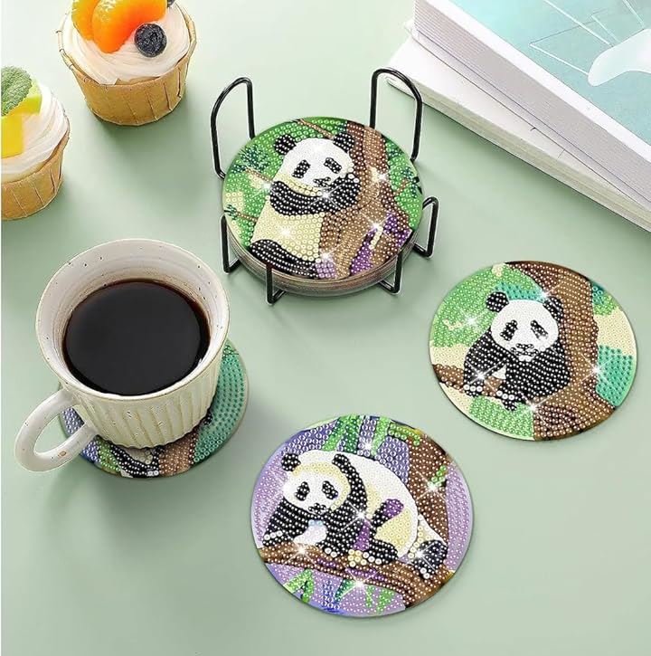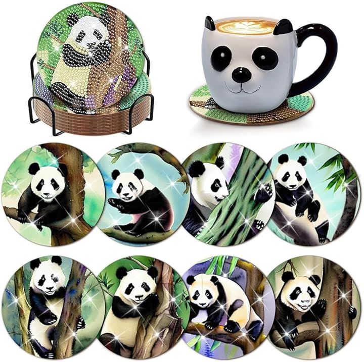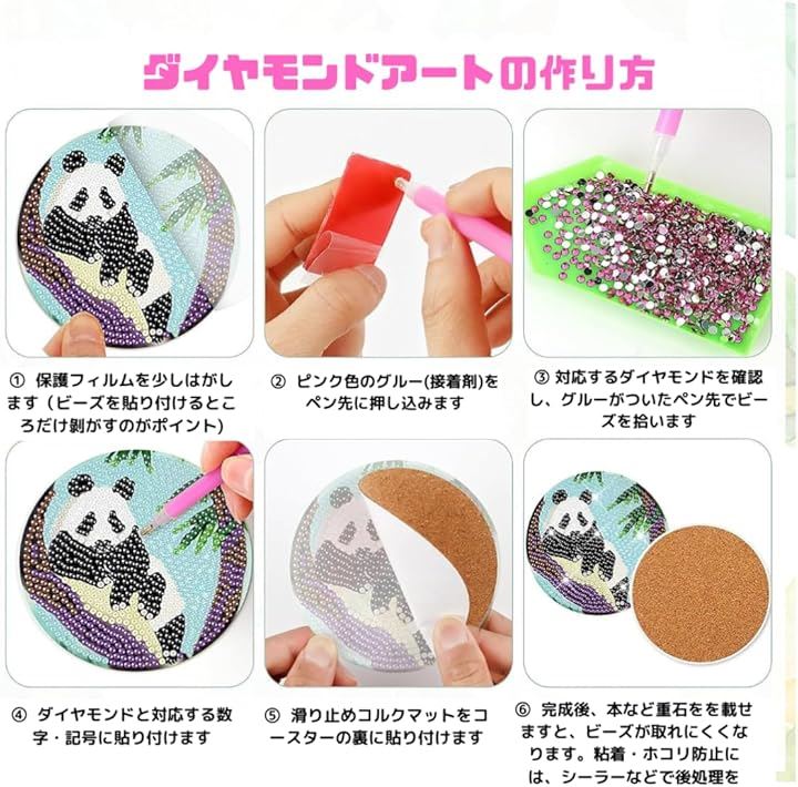 Astartia ダイヤモンドアート コースター キット DIY ダイヤモンドビーズ 5Dダイヤモンド塗装キット ダイヤモンドペインティング 初心者 大人 子供用 アートクラフト用品 8枚入 ホルダー付き かわいい